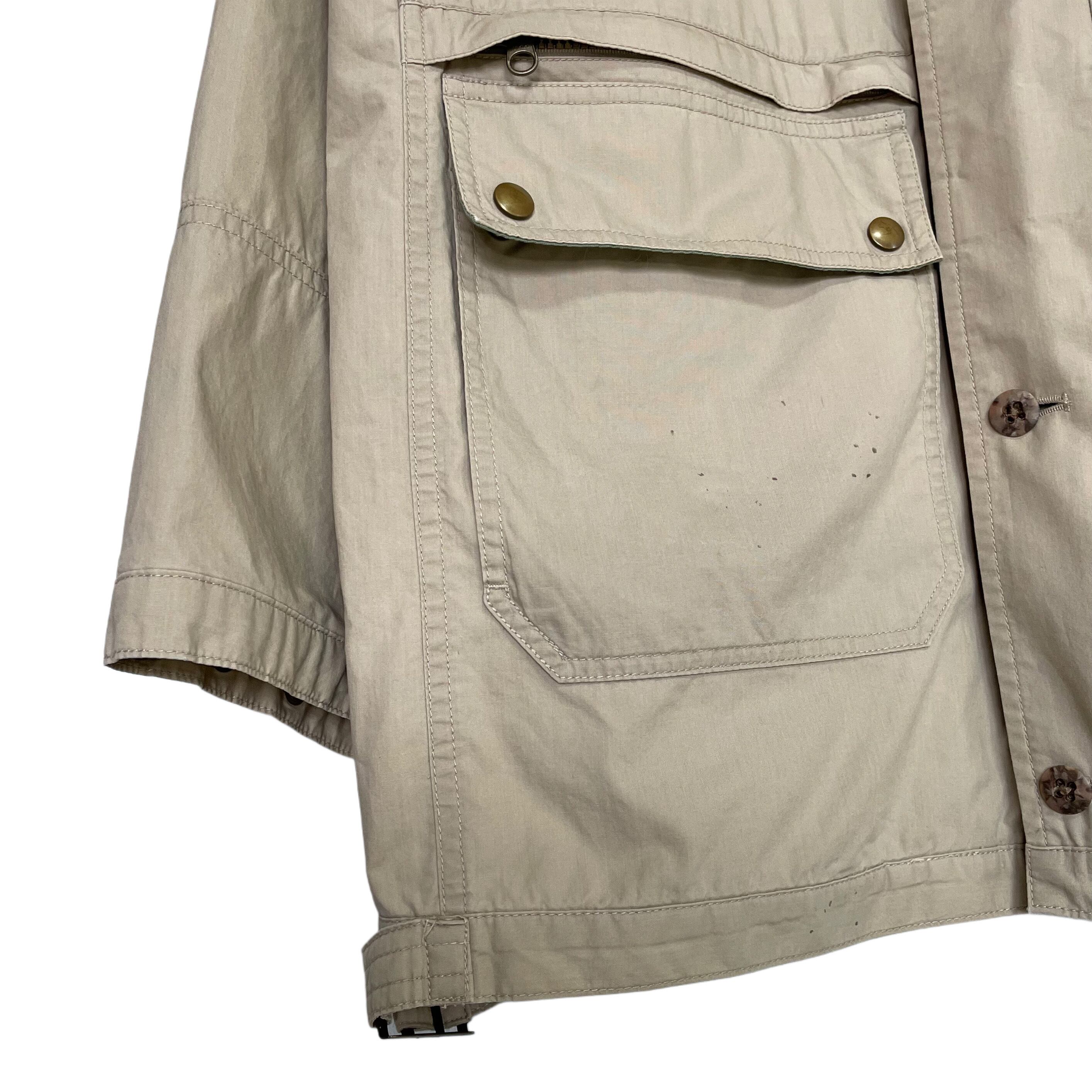 ベージュカラーのボディで襟裏やフラップ裏にグリーンが配置された精巧なデザイン。