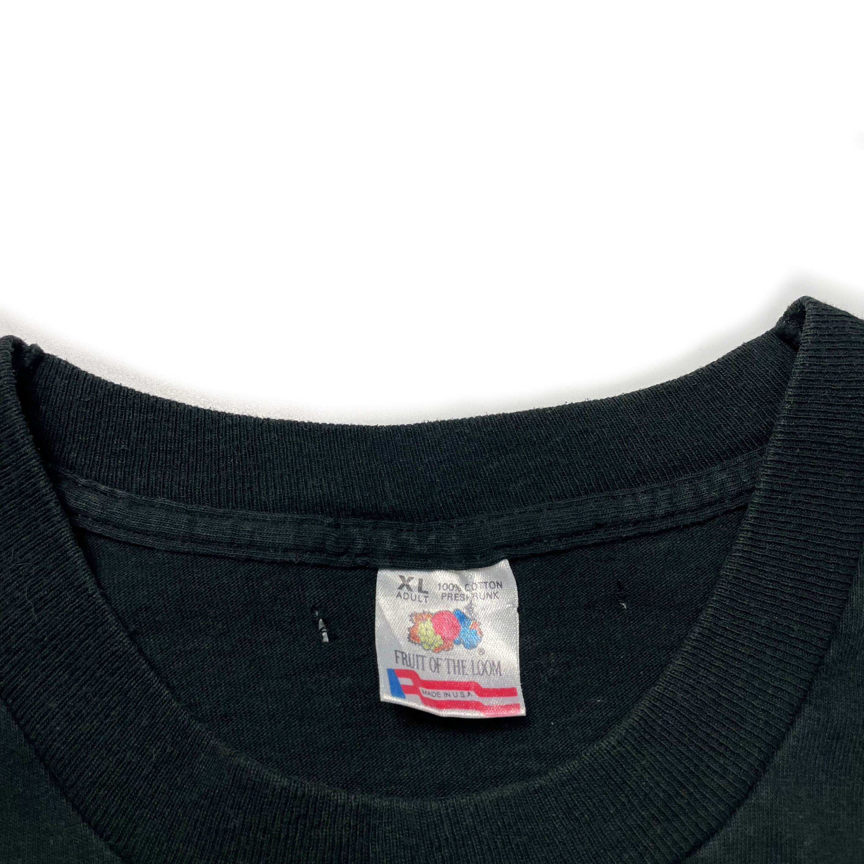 90年代のFRUIT OF THE LOOMボディ、アメリカ製、袖・裾ともにシングルステッチ仕立てです。