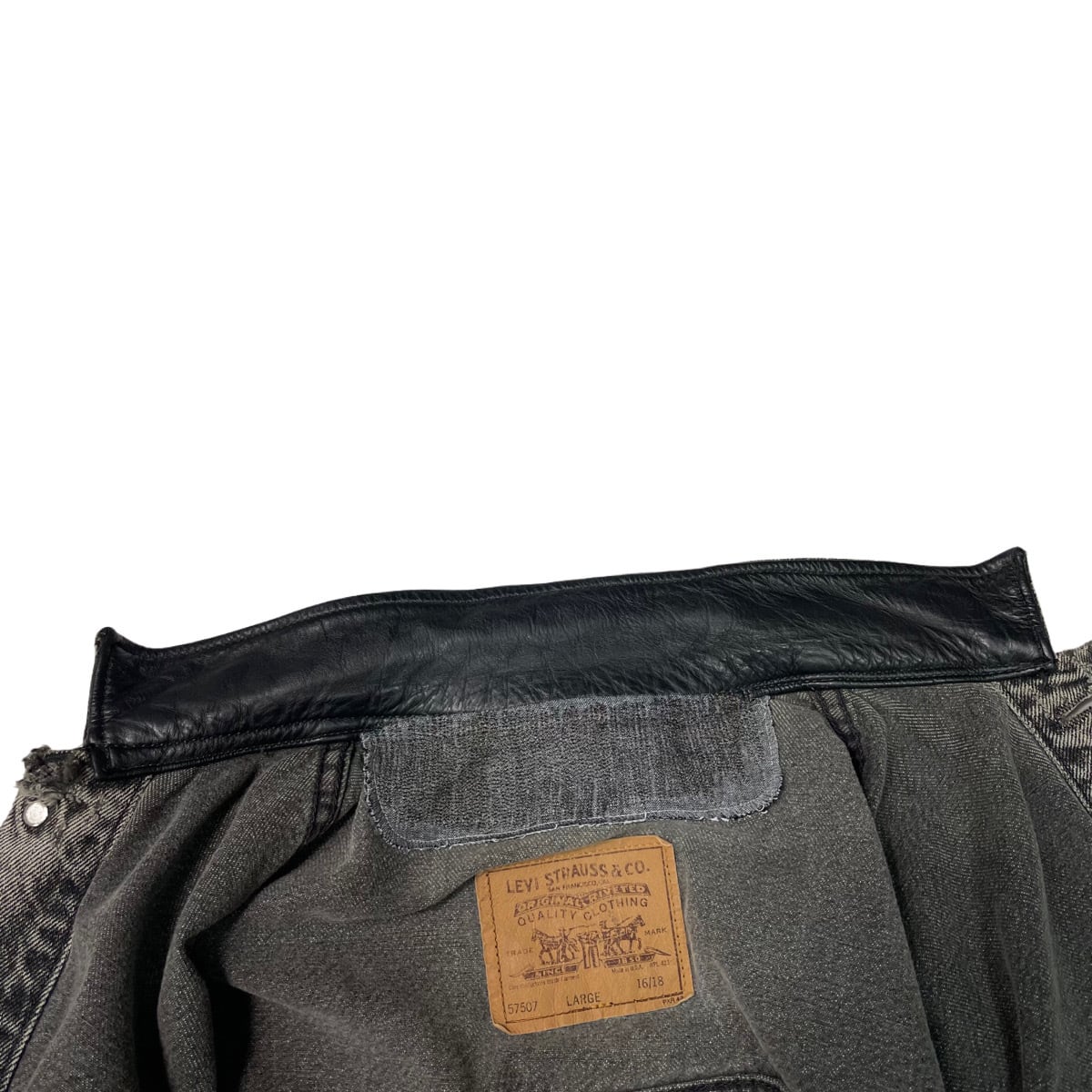 襟裏にリペアございますが、襟のレザーにかからないように綺麗に直しています。