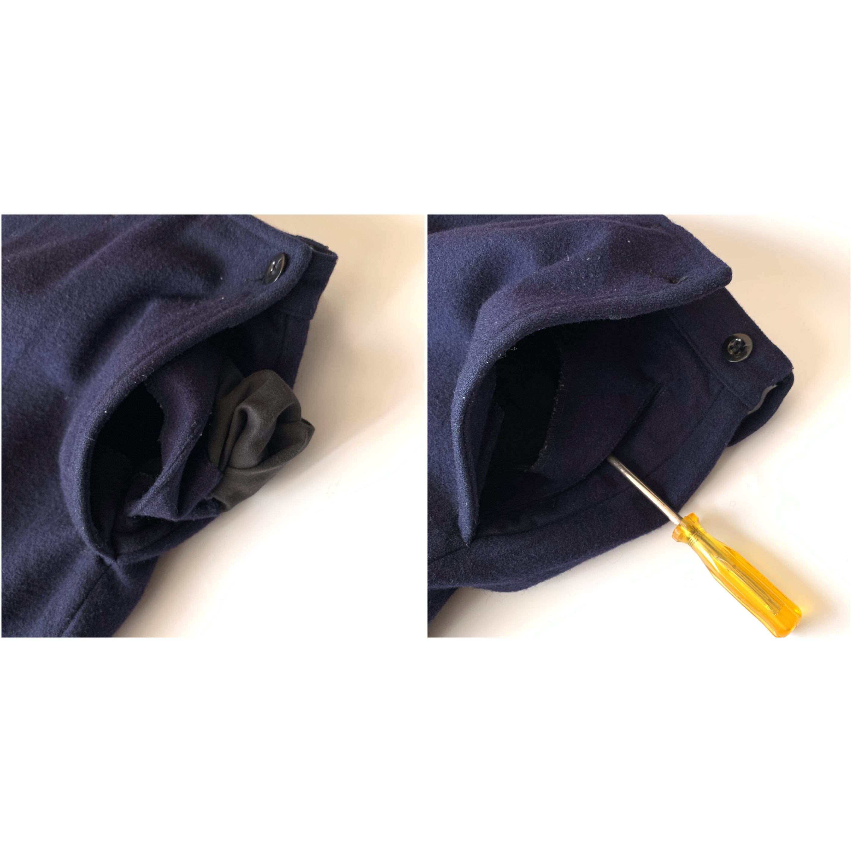 フロントポケット部の生地が二重に付けられており、ウエストにぴったりフィットします。