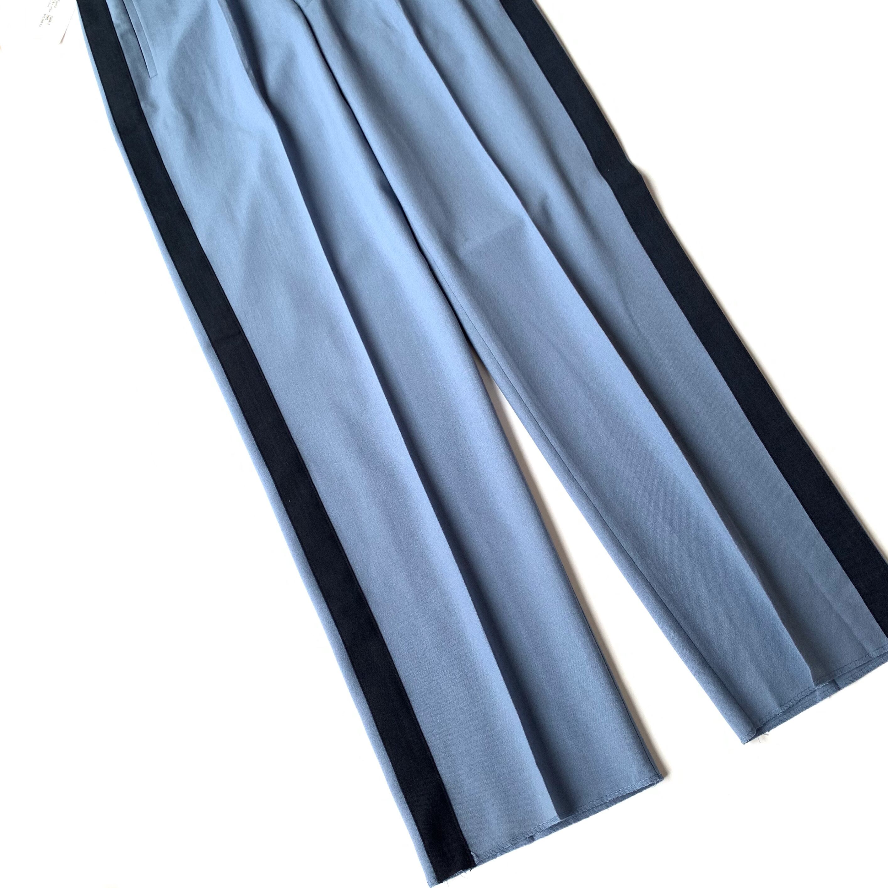 サラッと柔らかくとても履きやすいポリエステル/ウール素材。光沢感のある綺麗なグレーブルーカラーとなっています。