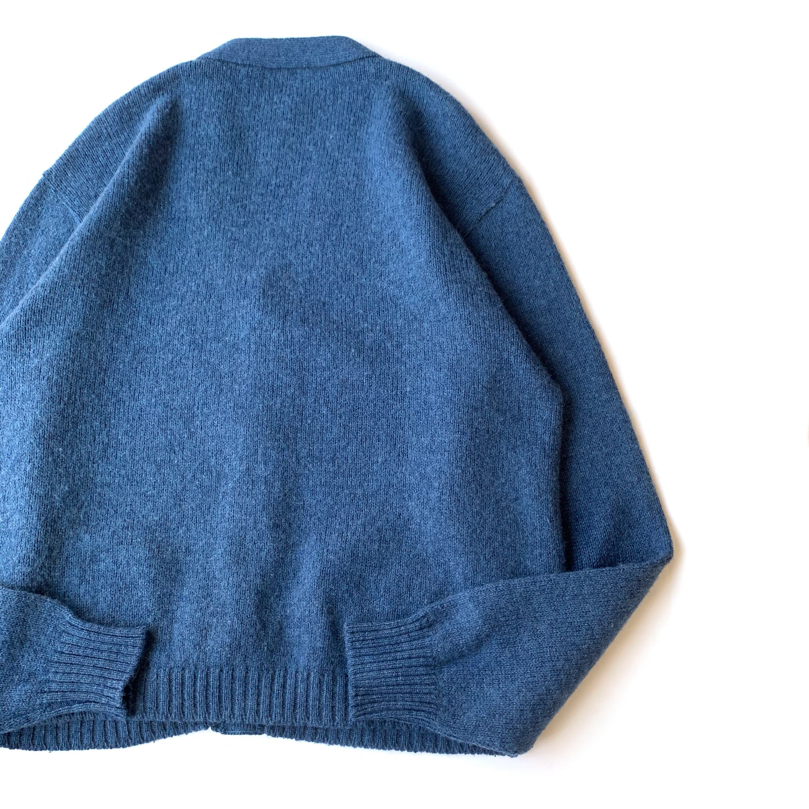 フワッと毛羽立った柔らかみのあるダークブルーカラー。赤みのあるプラスチックボタンも良いアクセントになっております。パッチポケットが付いているのも嬉しいですね。