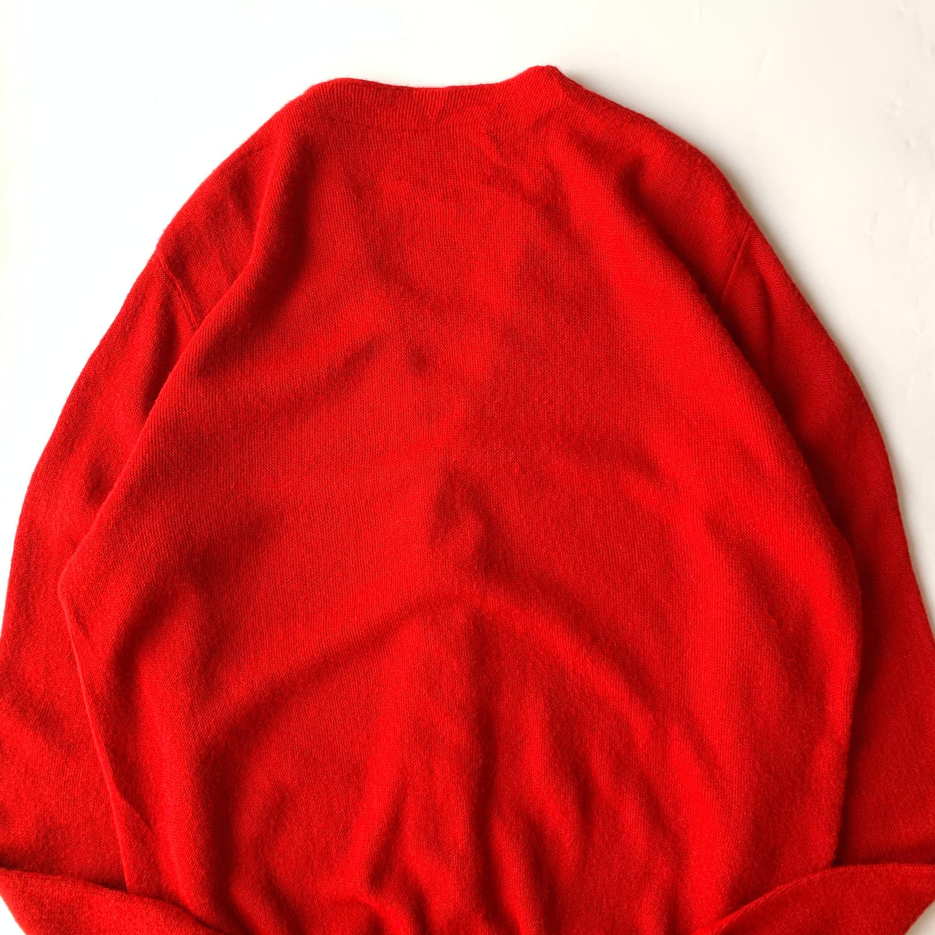 こちらは1970年代のアクリルカーディガンです。白地に金色でブランド名が入る内タグが付きます。