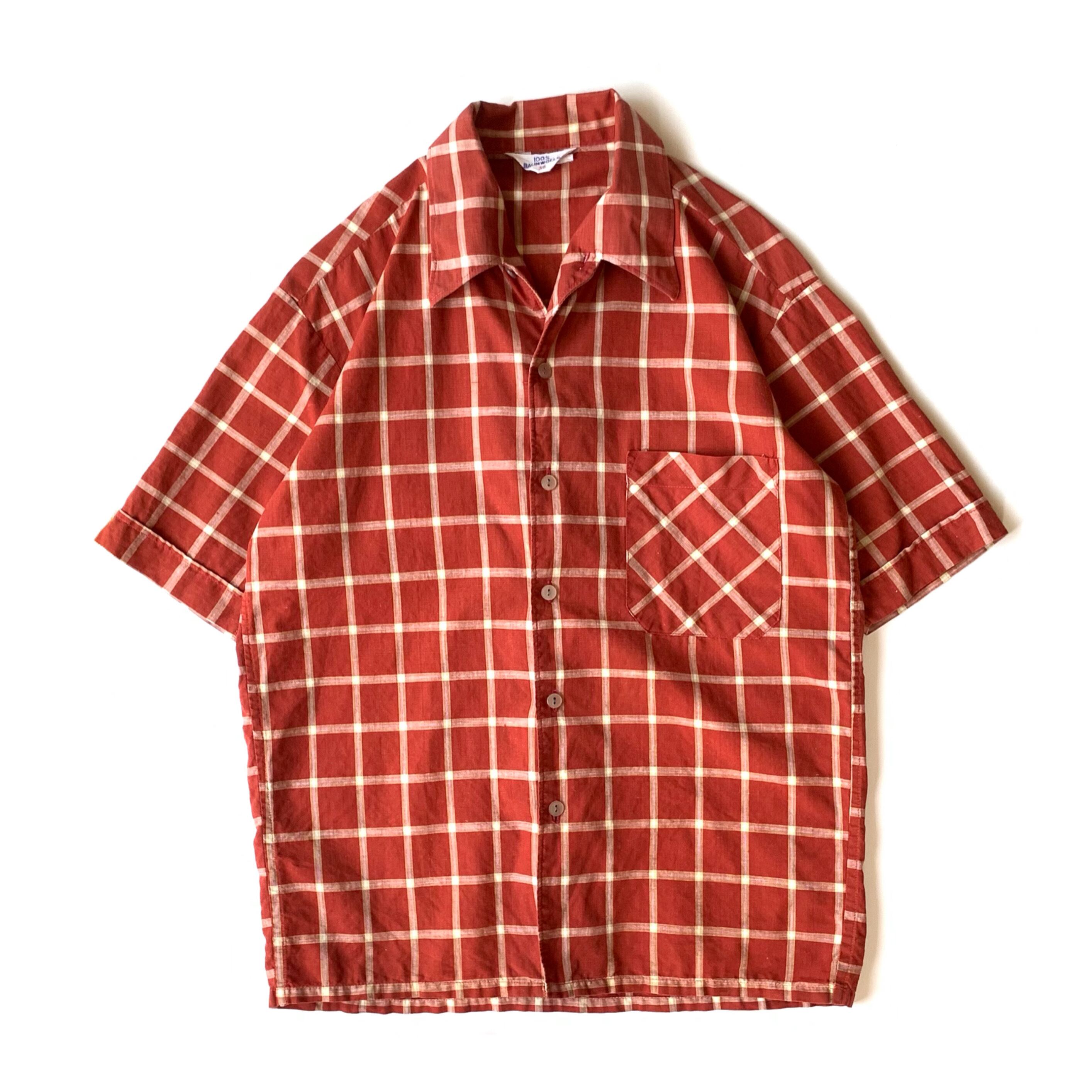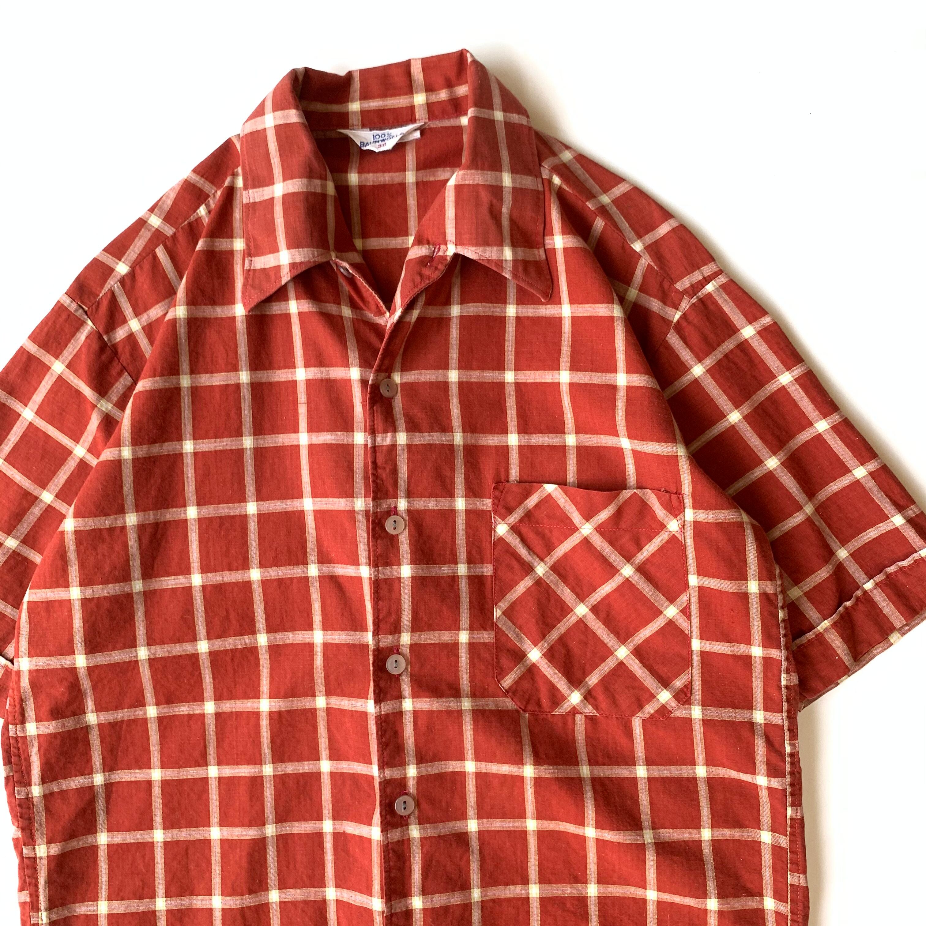 60s 70’s フランス製 オープンカラーシャツ チェックシャツ フレンチ