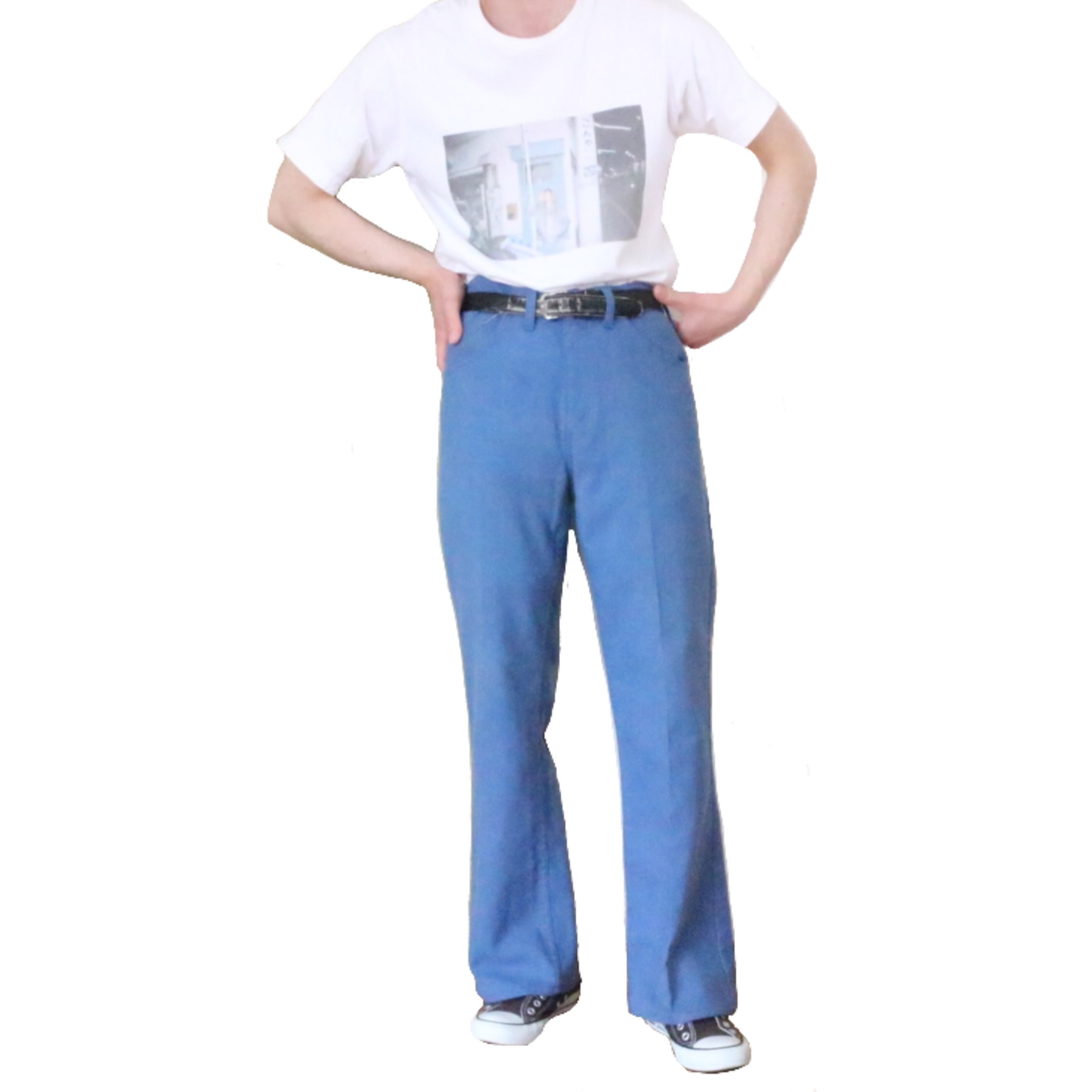 517タイプのシルエットが多い中でこちらは646モデルのベルボトム(フレア強めの綺麗なシルエット)になります。よくあるポリエステルではなく、こちらはおそらくホップサック生地。