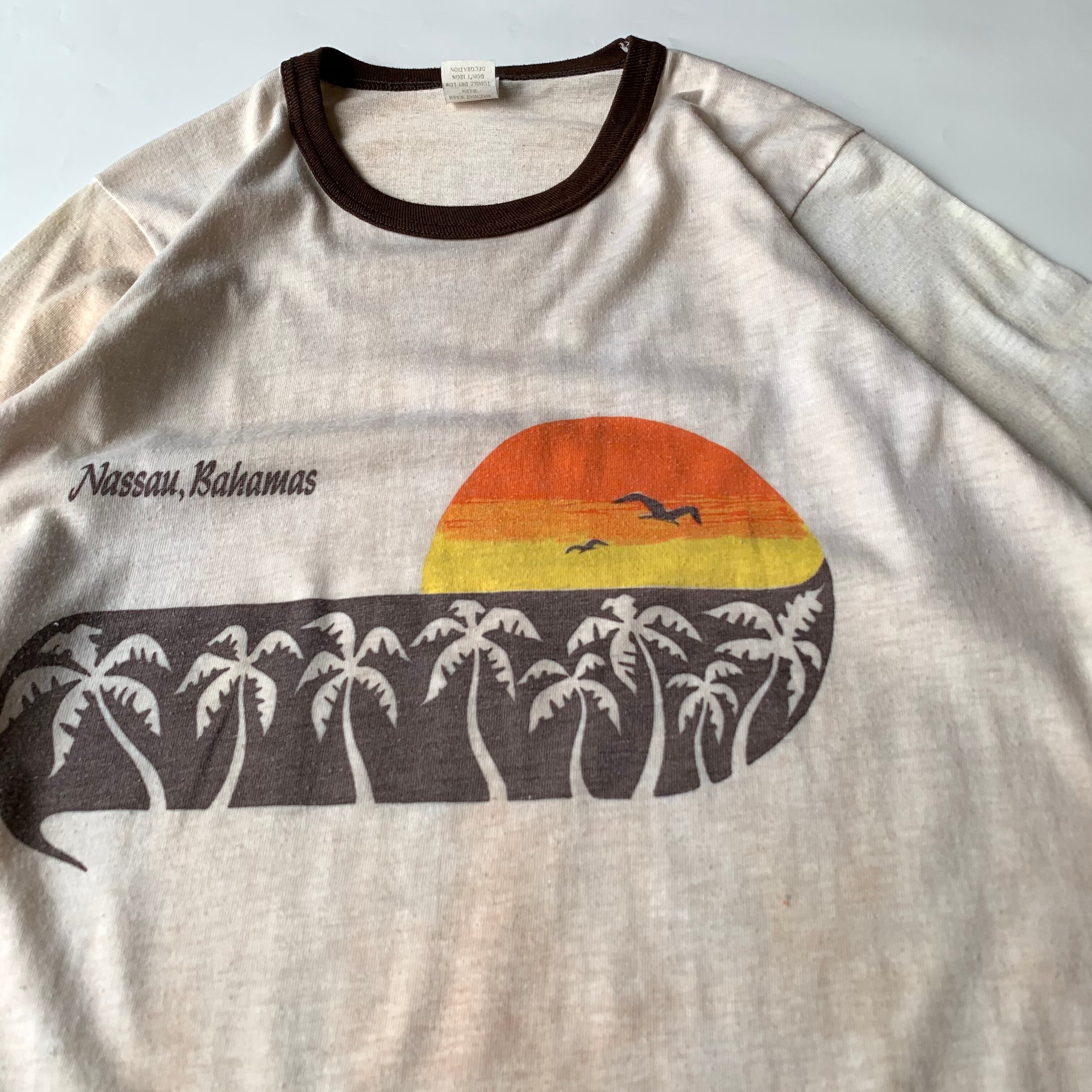 フロントにはサンセットビーチと”Nassau Bahamas”の染み込みプリント。バハマの首都ナッソーのビーチが描かれております。