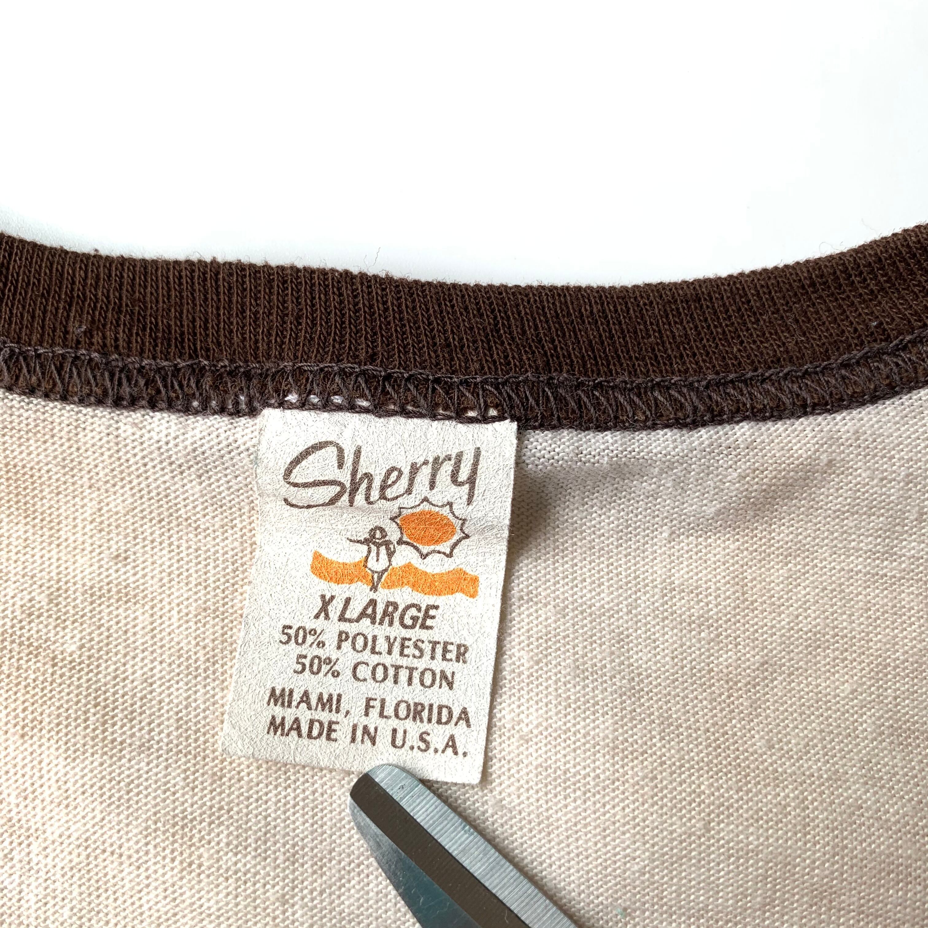 70s Sherry リンガーTシャツ USA製 染み込みプリント ヒッピー