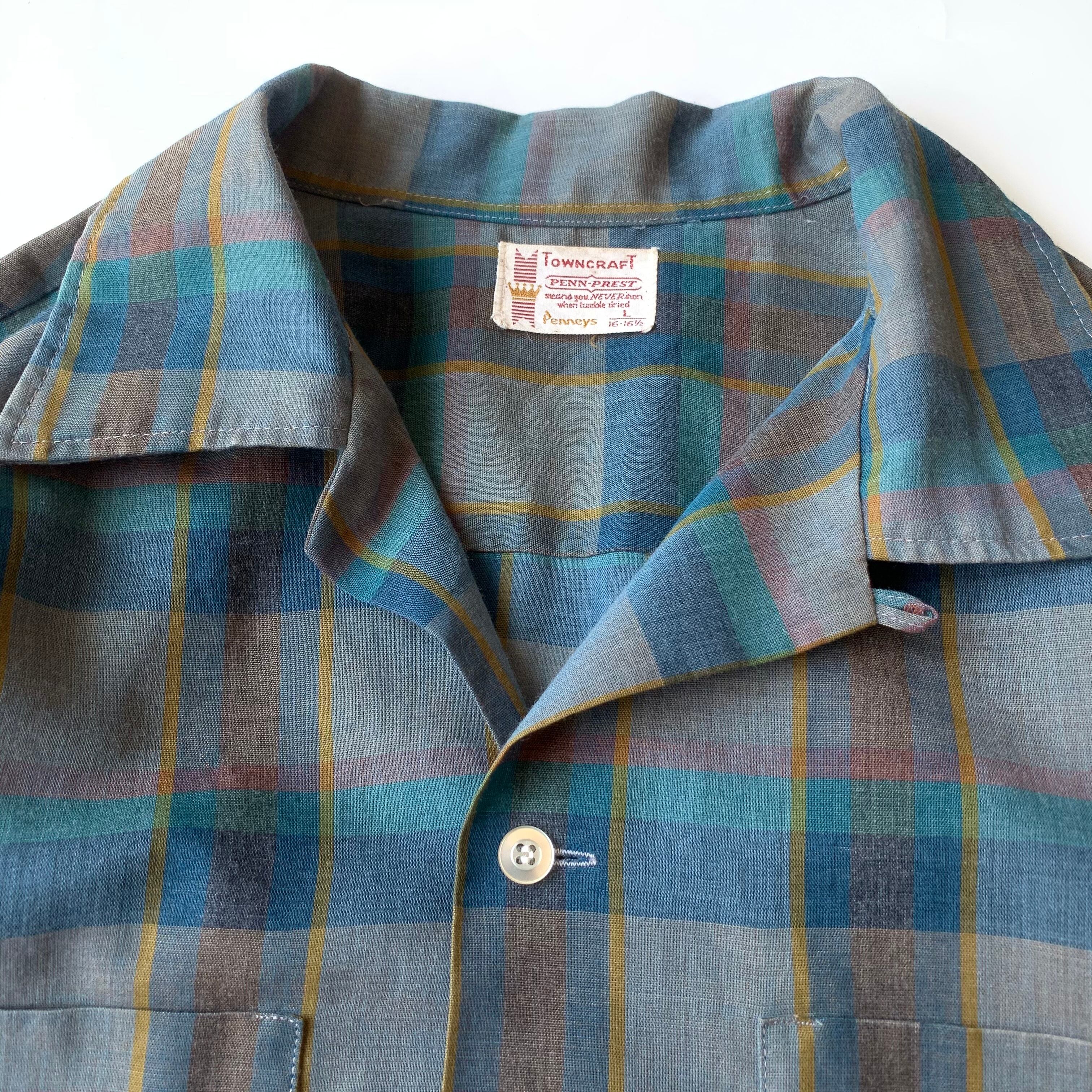 PENN-PRESTタグが付く60-70年代頃のTOWNCRAFT オープンカラーチェックシャツ。
