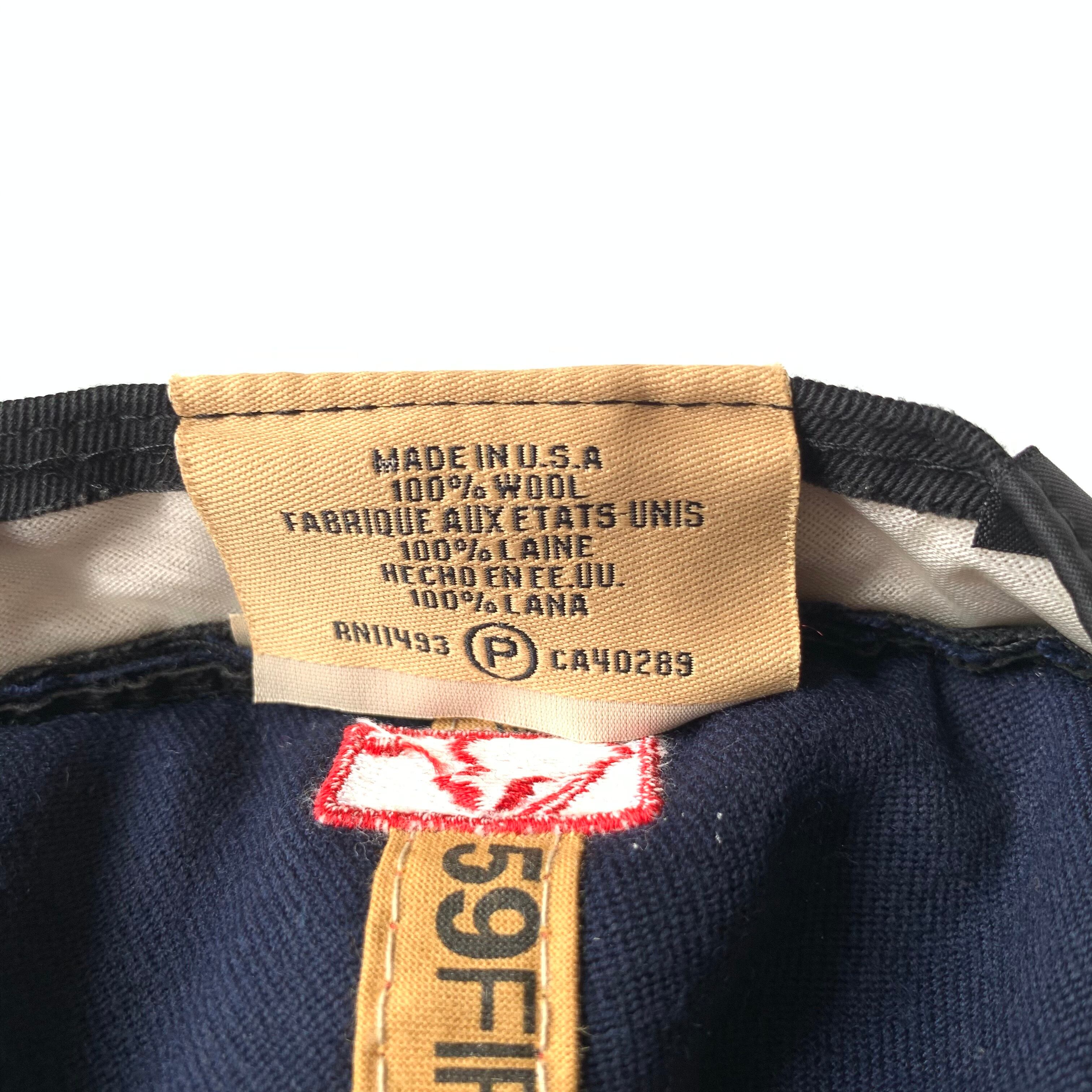 59FIFTYという1点ごとにサイズが決まっているライン。クラウン部分はネイビー、ステッチやロゴがレッドという好配色。
