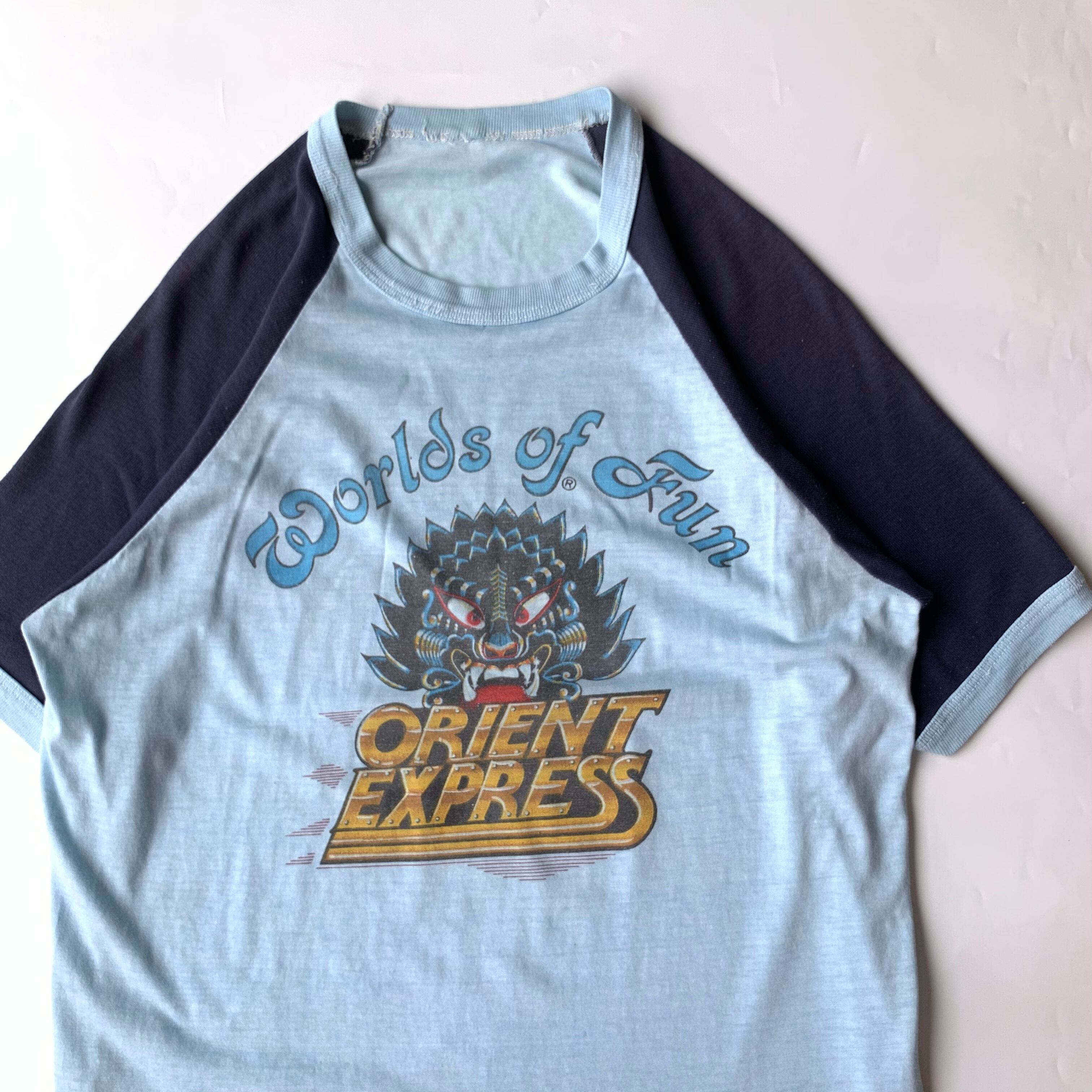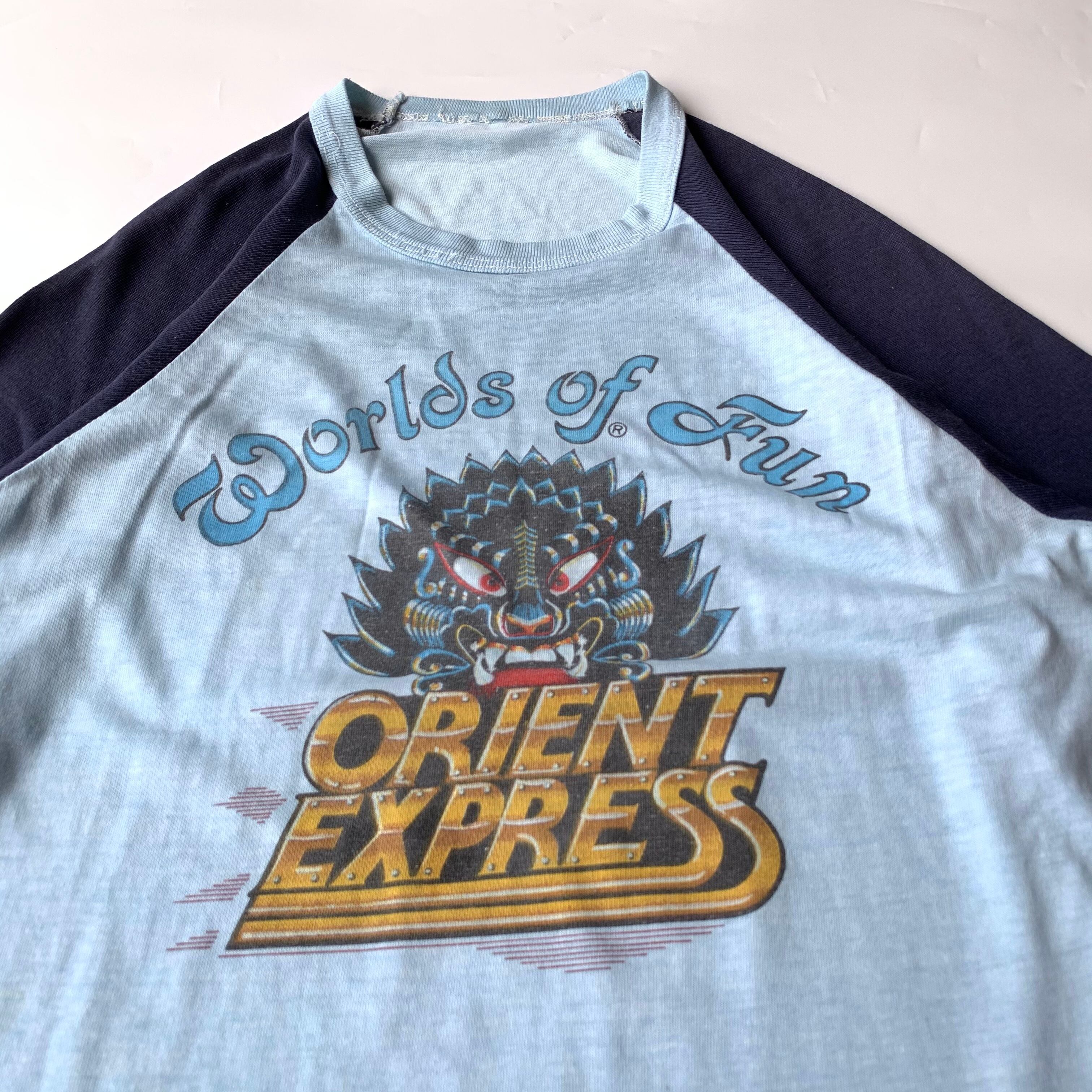 80s 90s ORIENT EXPRESS ラグランTシャツ 染み込みプリント
