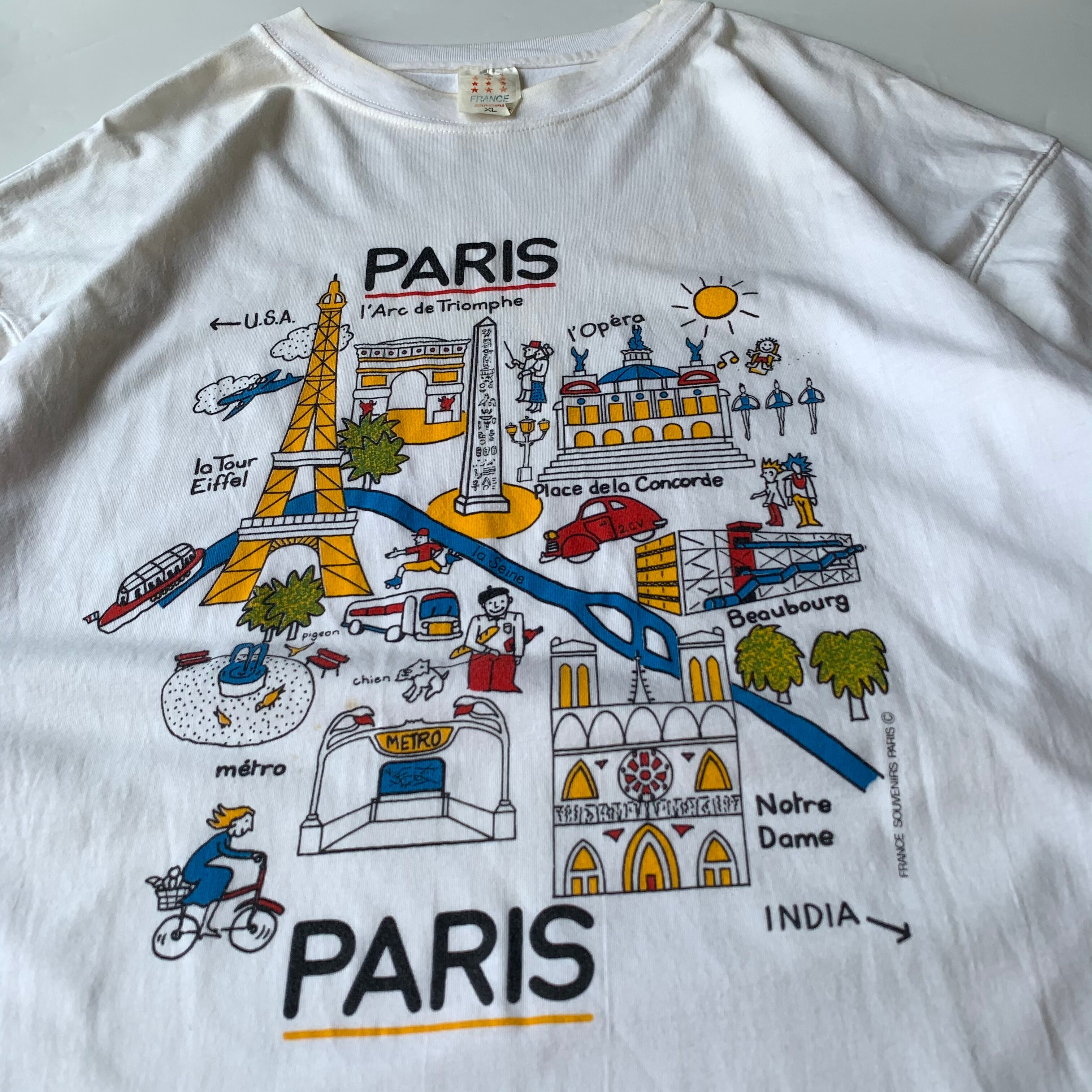 90s フランス スーベニア PARIS プリント Tシャツ お土産 地図