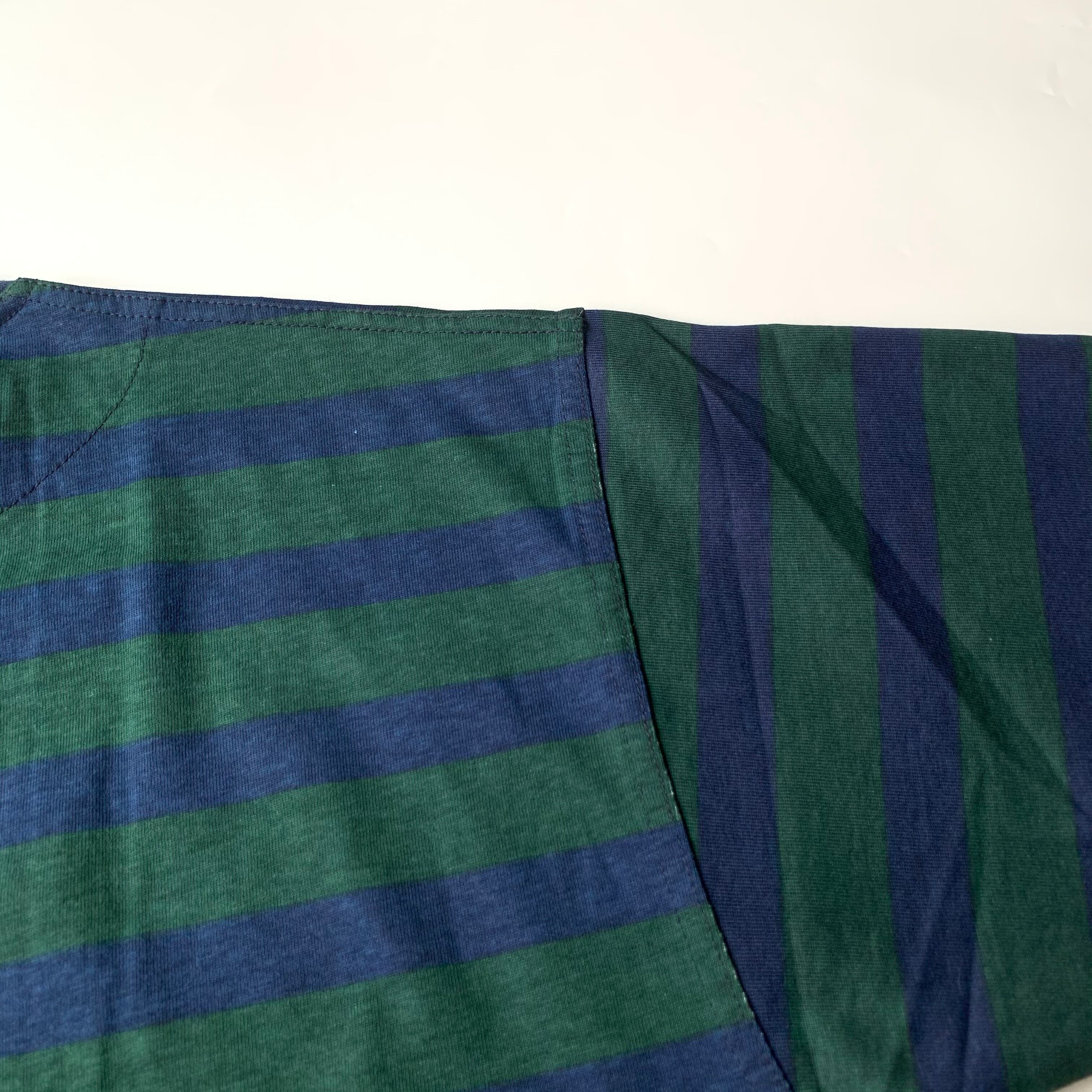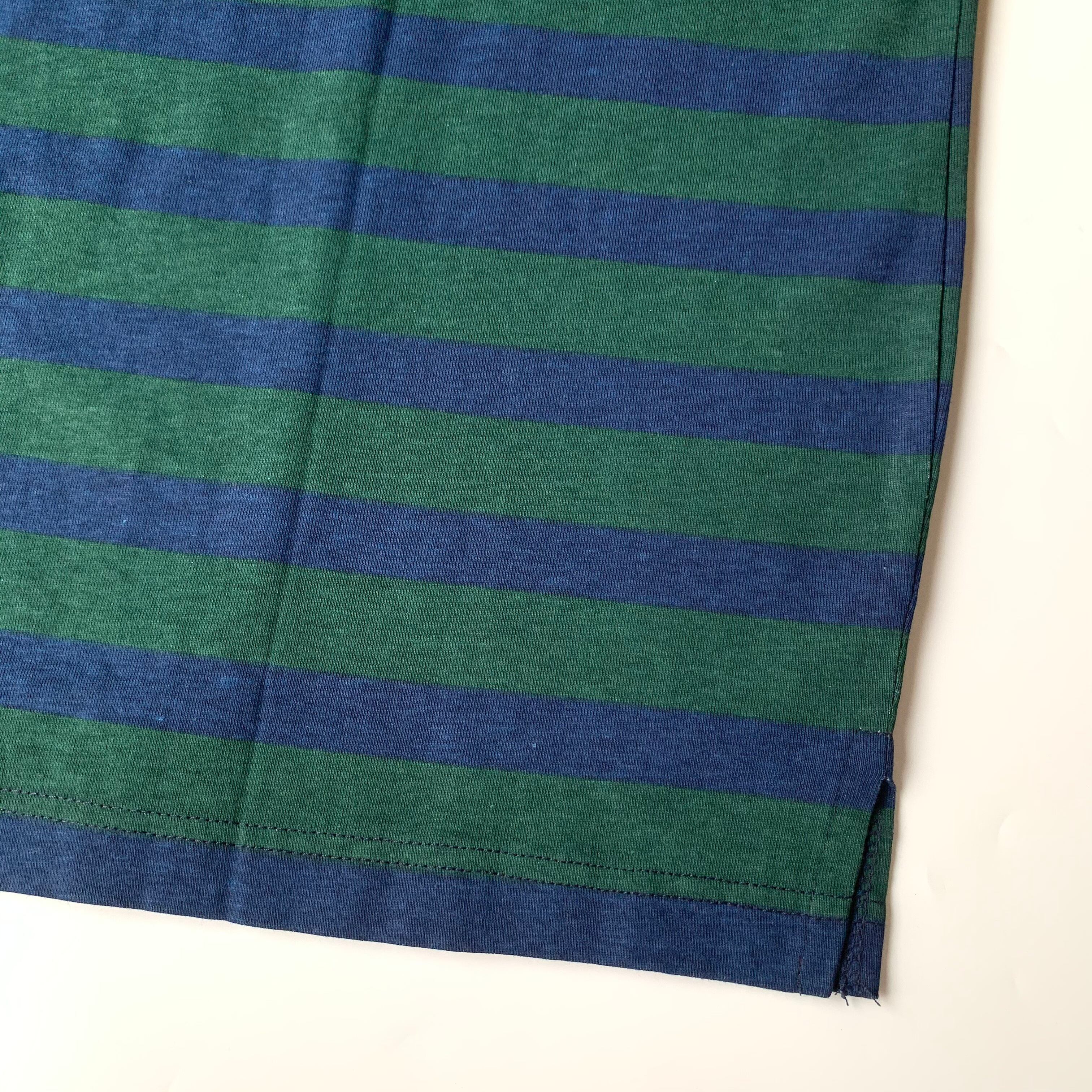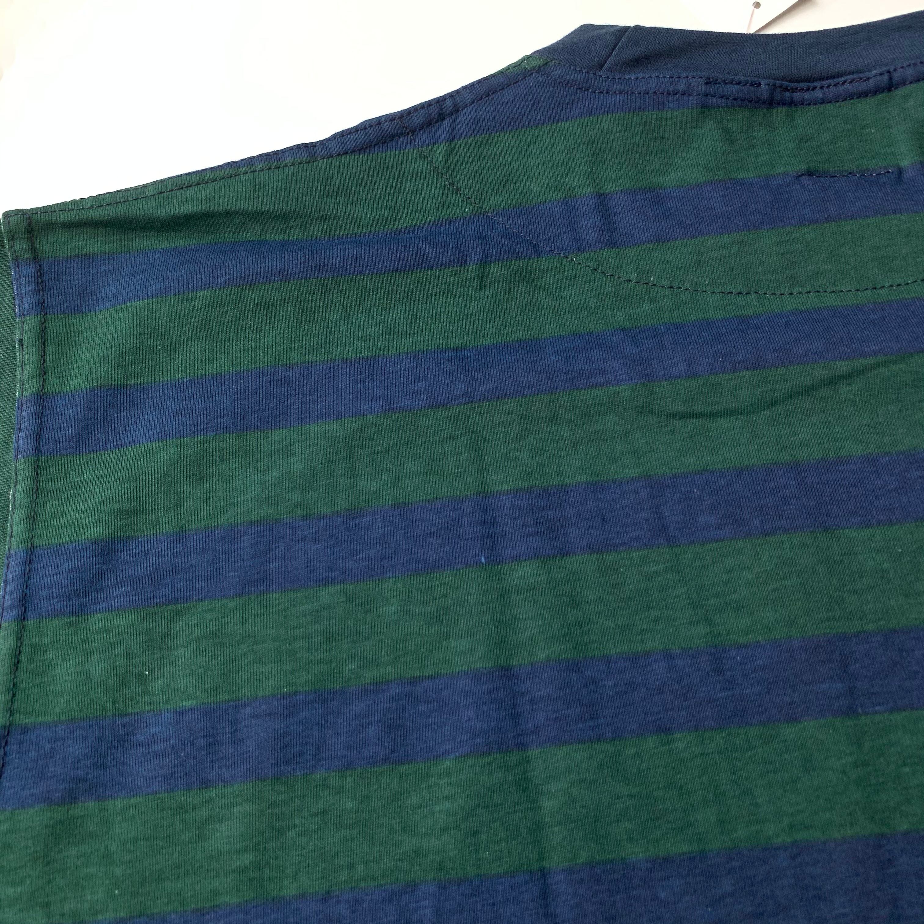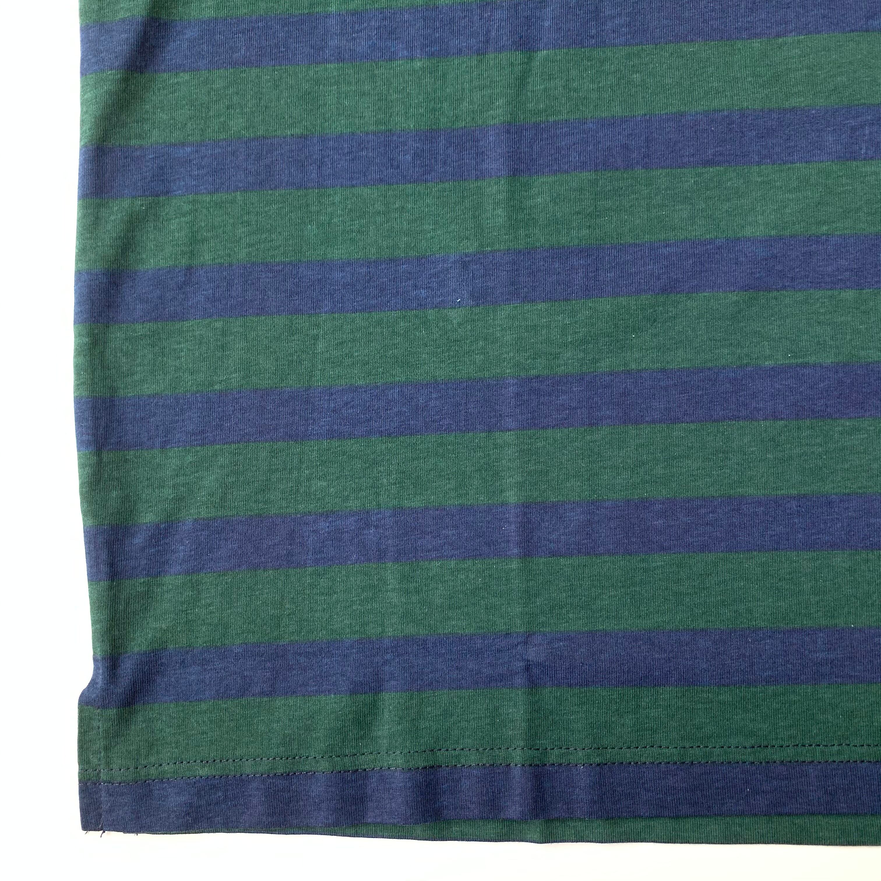 グリーンとネイビーの太ボーダー柄。フロントにはGAPのロゴがプリントされております。