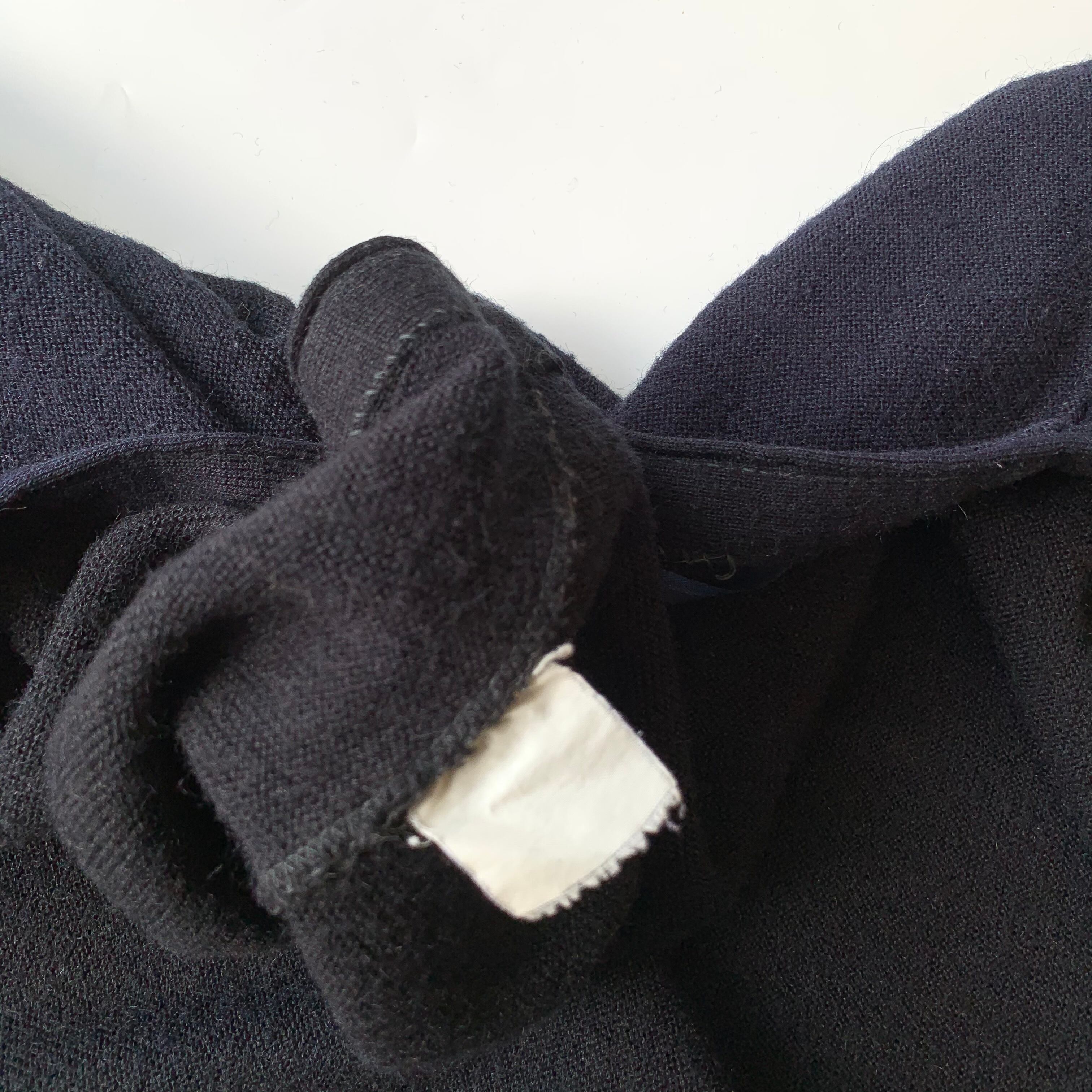 内タグの感じからおそらく後染めのものかと思われます。裏地やリブ先は黒いので、ブラックをネイビーに染め直したと考えられます。