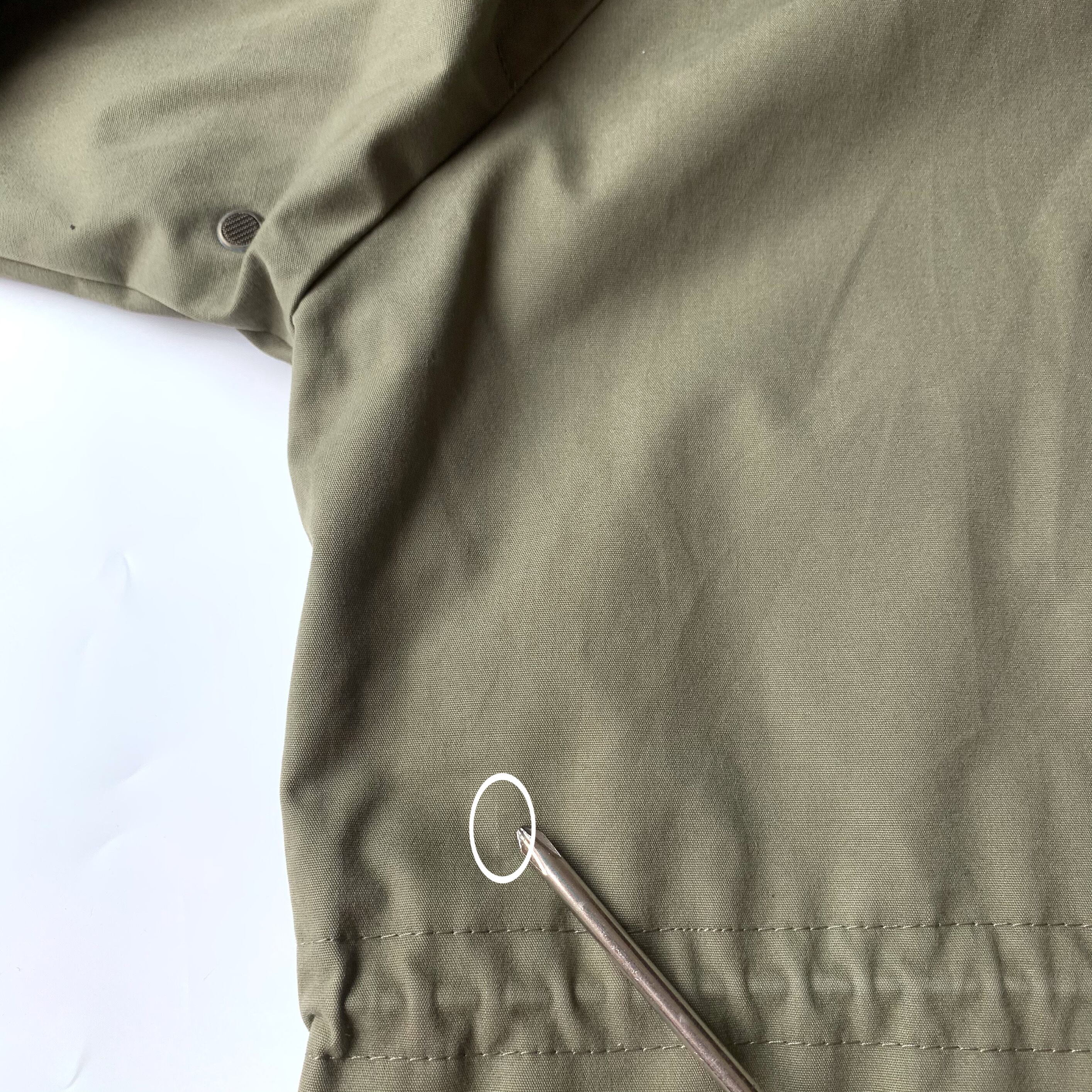 裏地や裾にはドローコードがございますので、絞ることでシルエットを変形させて着ることが可能。