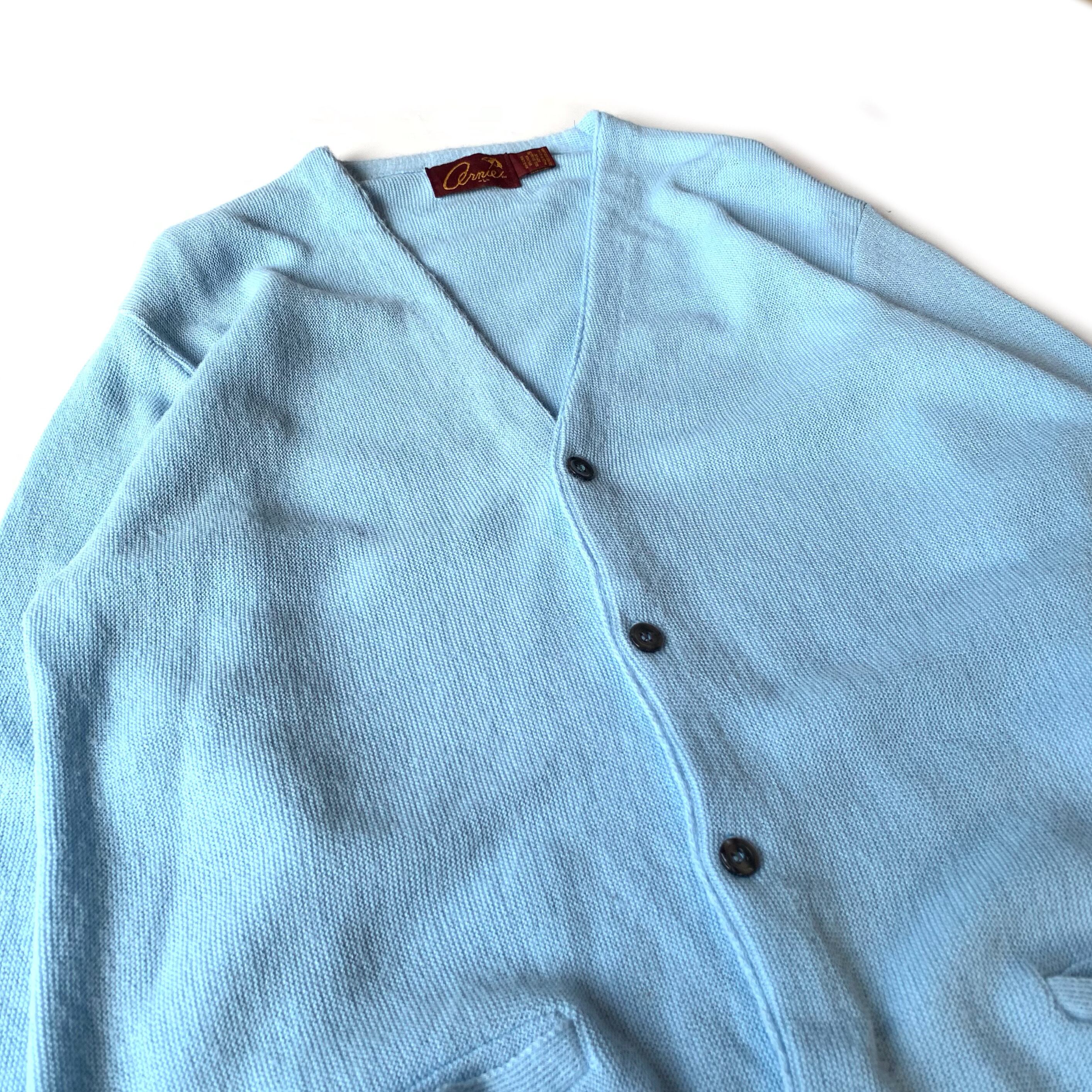 ORLON ACRYLIC という乾きやすく軽量な素材が用いられているため、楽に羽織れて着心地も抜群。爽やかなライトブルーカラーで、1年通して着れる1枚です◎