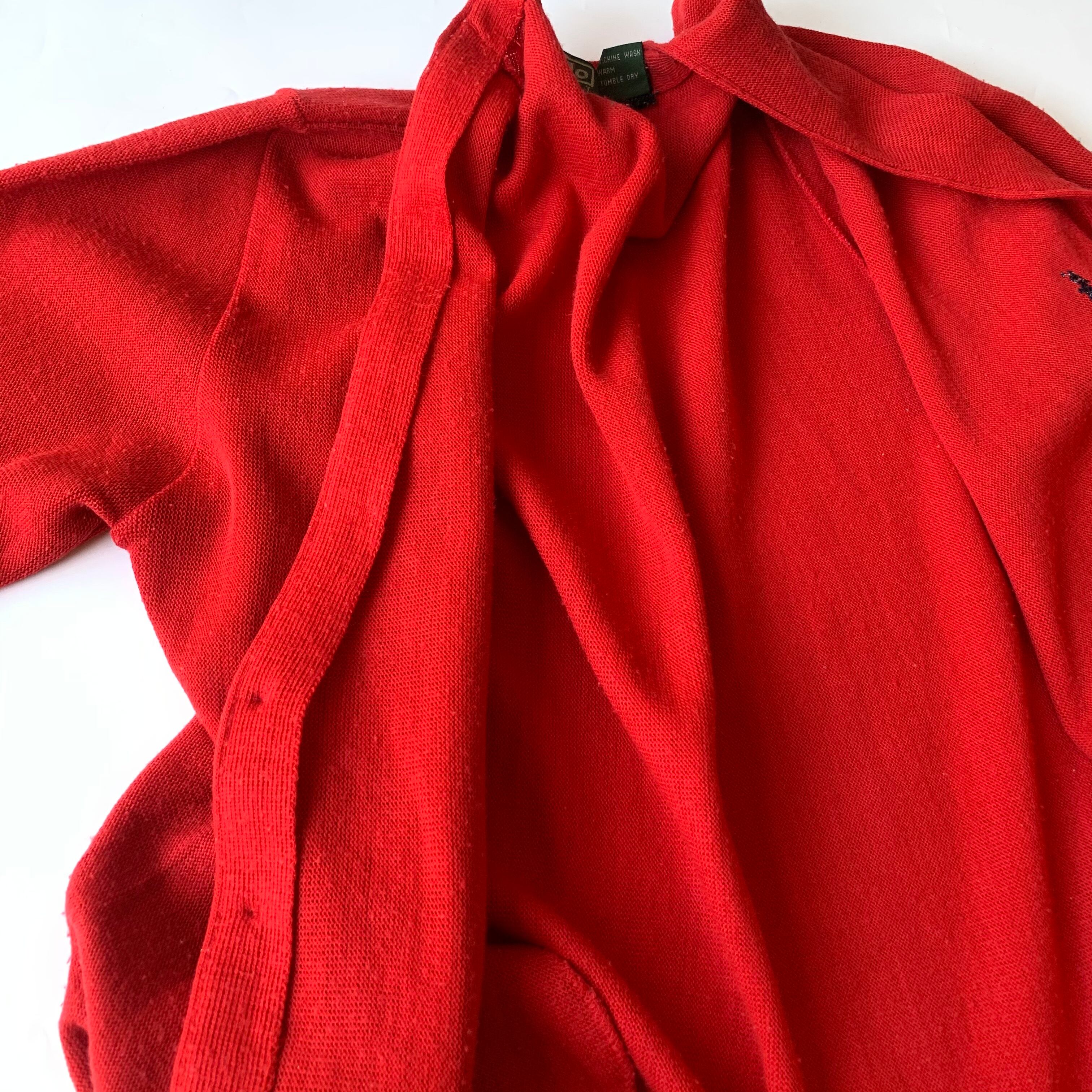 発色の良い鮮やかなレッドカラーボディにラルフローレン定番のポニーの刺繍入り。