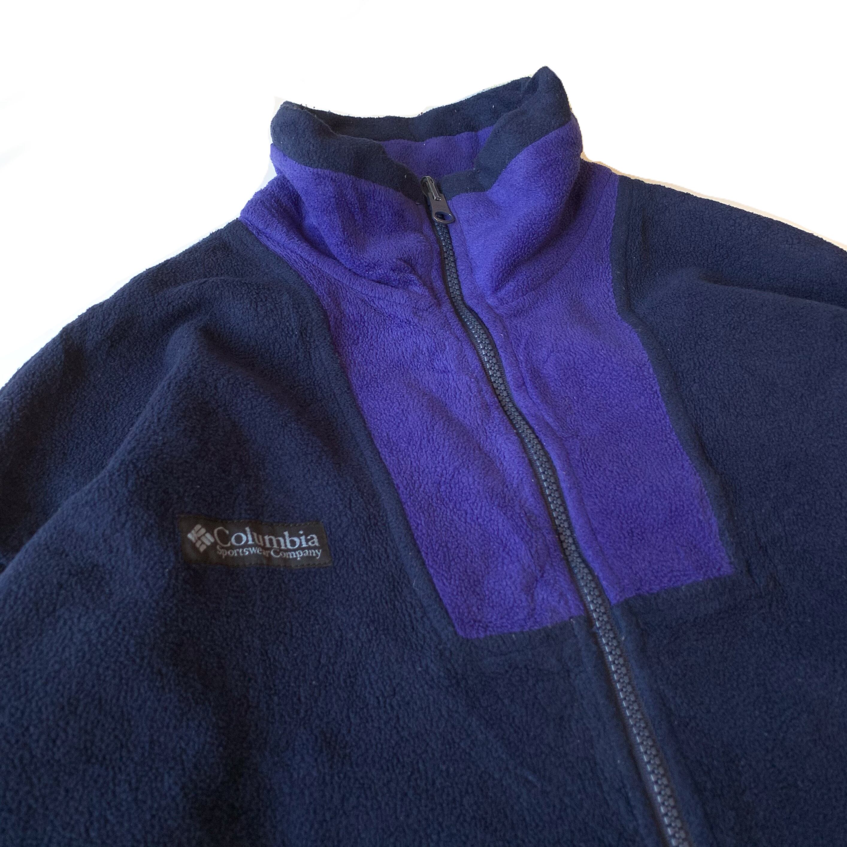 ネイビー×パープルのColumbiaらしい配色。首元から胸元にかけてパープルが配置されており、良いアクセントに。襟裏地もネイビー/パープルの2トーンですので、折り返して着ても良いです。