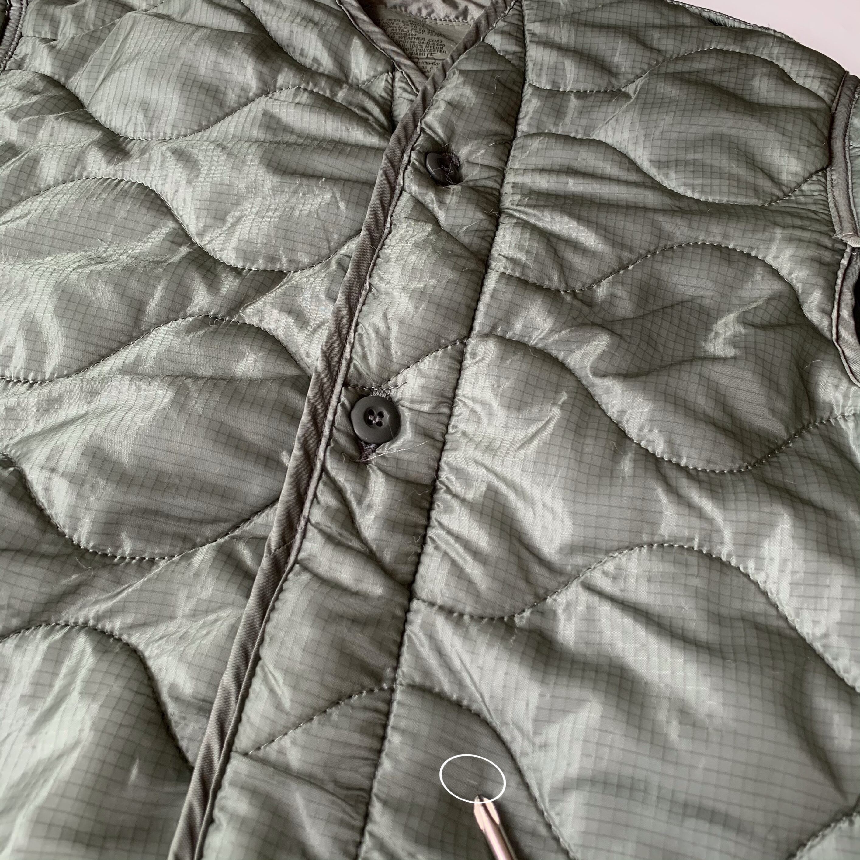 素材には軽量なナイロンが使用されおり、中綿入りのオニオンキルティングが見た目からは想像できないほど軽く保温性に優れています。