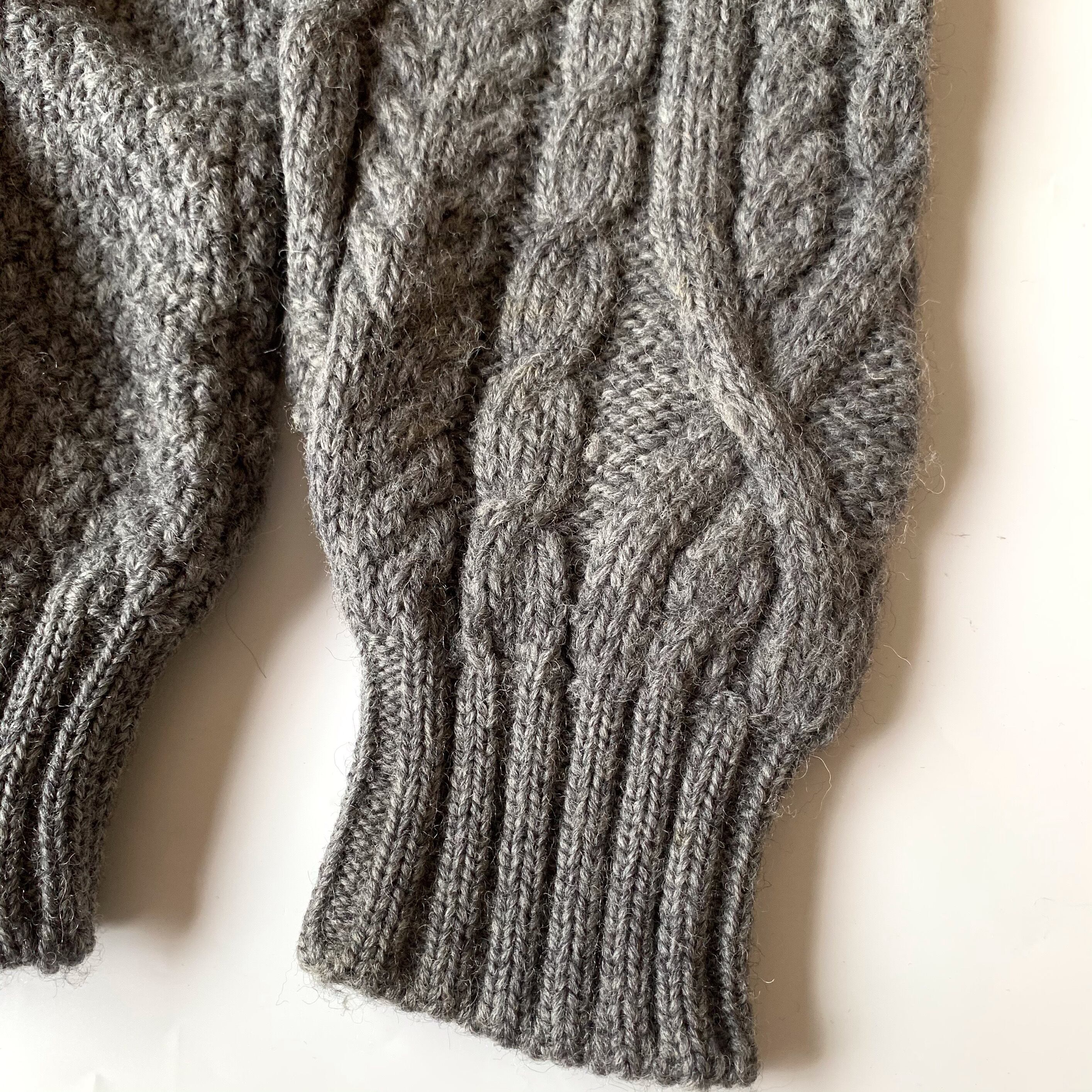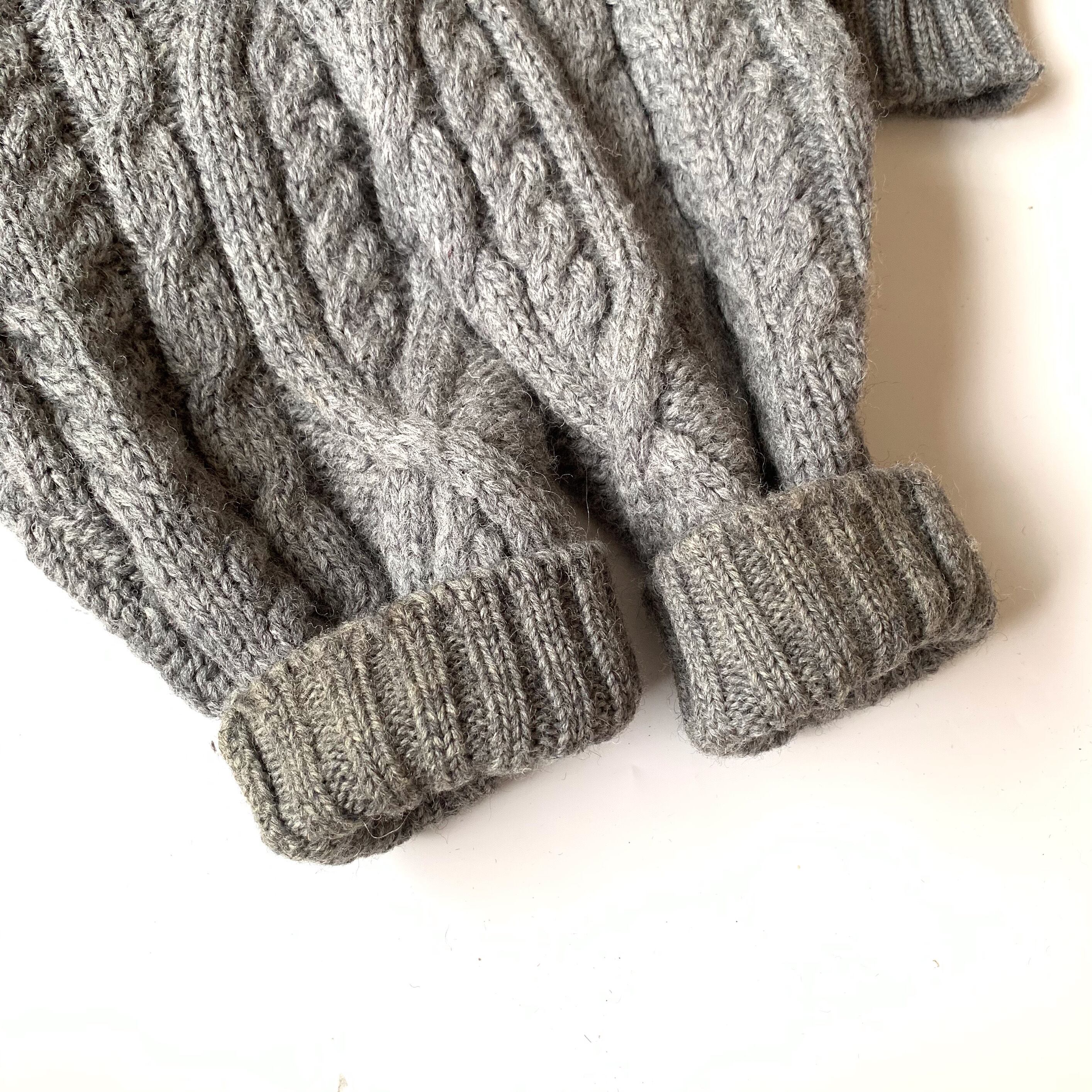 アランニットの発祥と言われているアイルランド製の逸品です。寒さの厳しい北欧で育った羊毛を使用しているため、防寒性は抜群です。