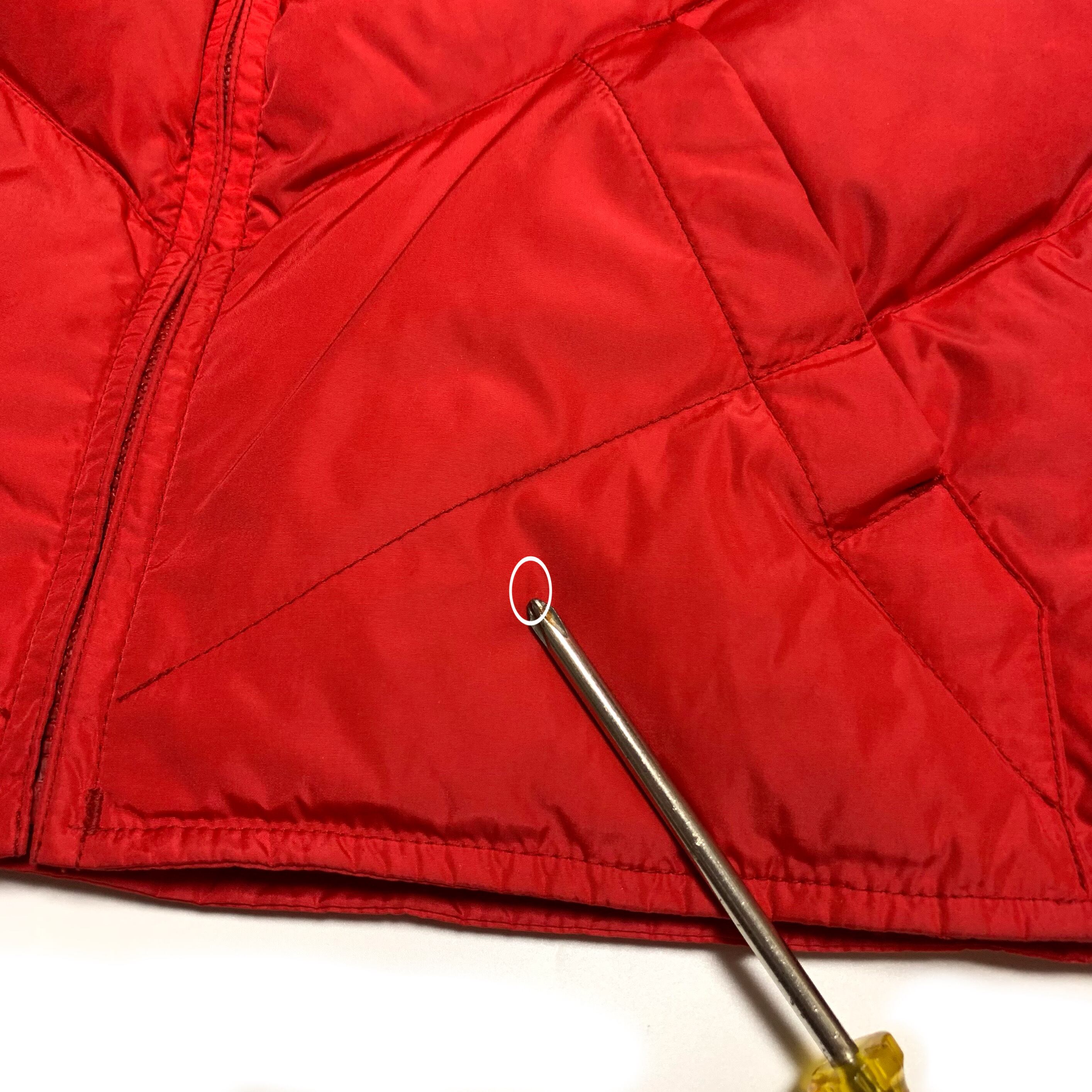 後身頃 裾上には2段階アジャスター付きです。Back to the futureでマーティンが着てそうな真っ赤なダウンベスト。
