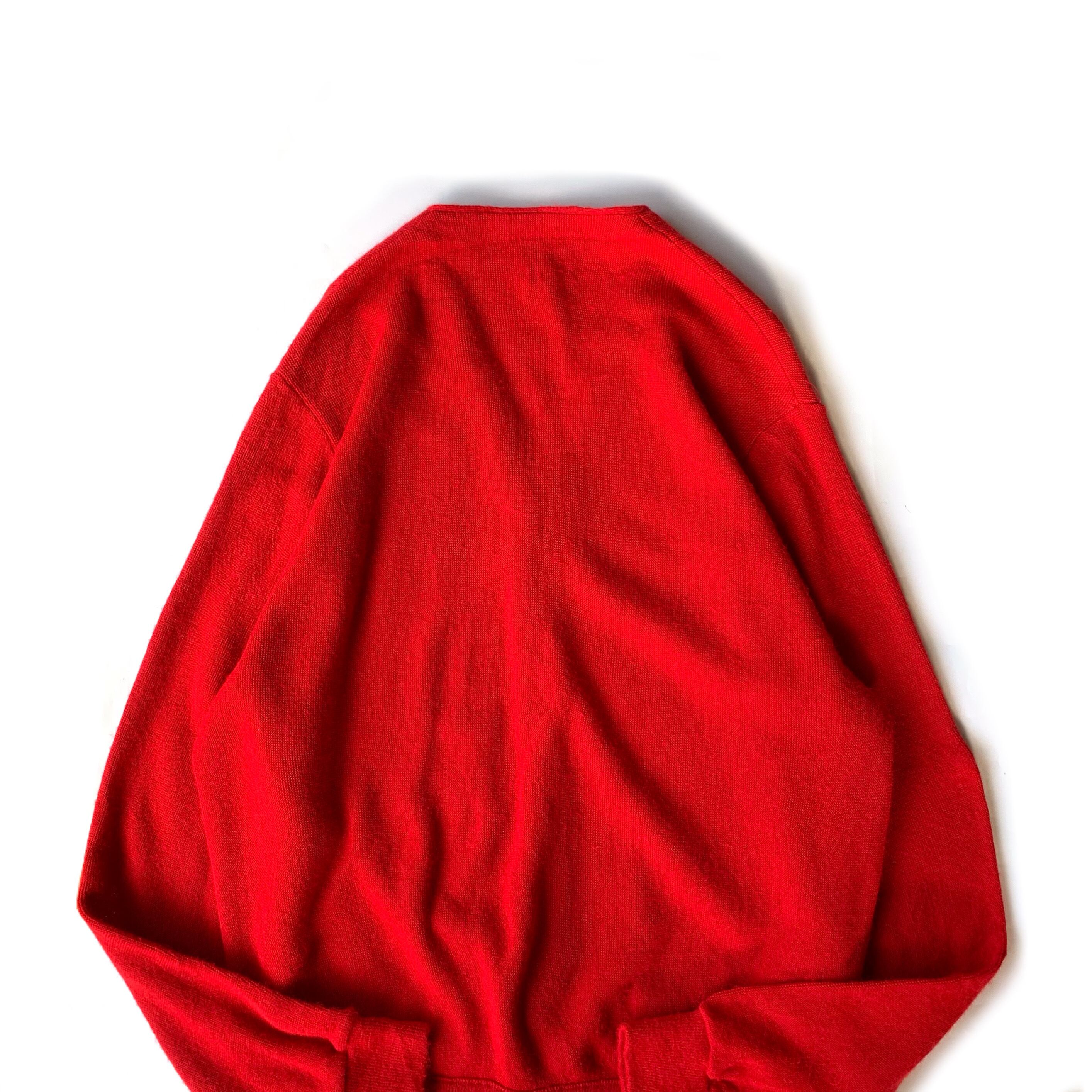 発色のよい真っ赤なアクリルカーディガン。ワンカラーのため着回しやすく、トレンドが過ぎても長くお使いいただけるアイテム。