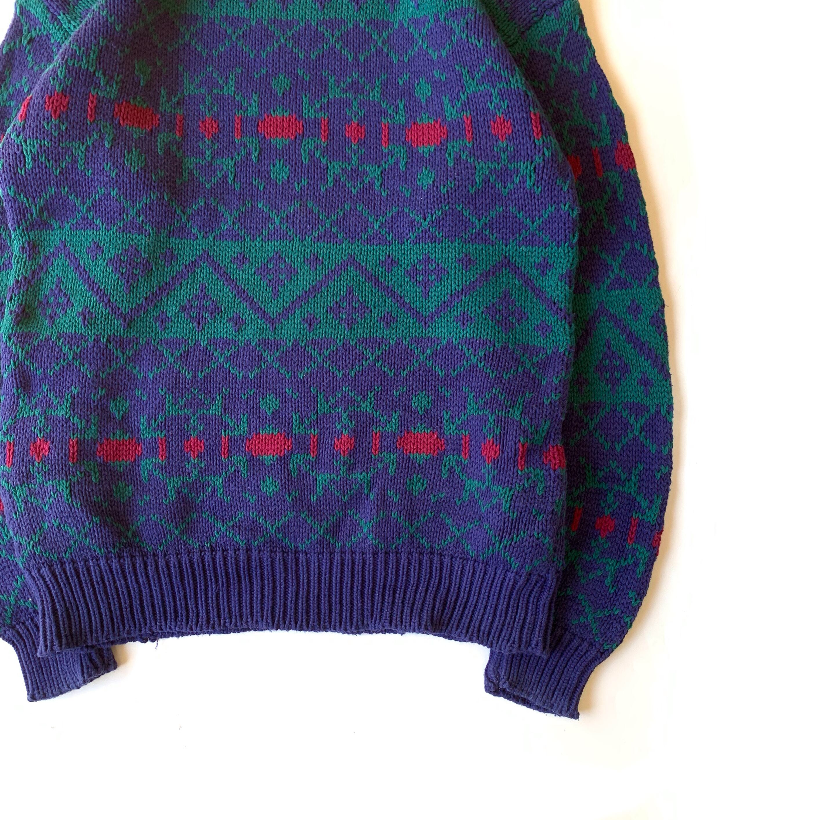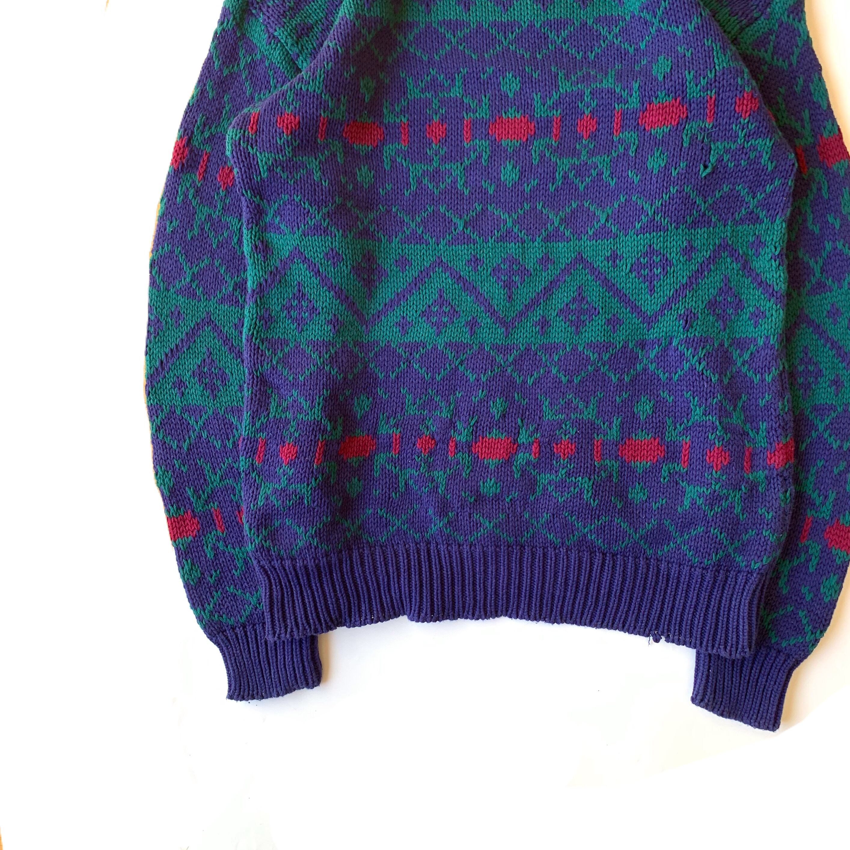 紺タグがつく1990年代のOLD GAP コットンニット。モンスターズインクに出てくるサリーのような総柄。