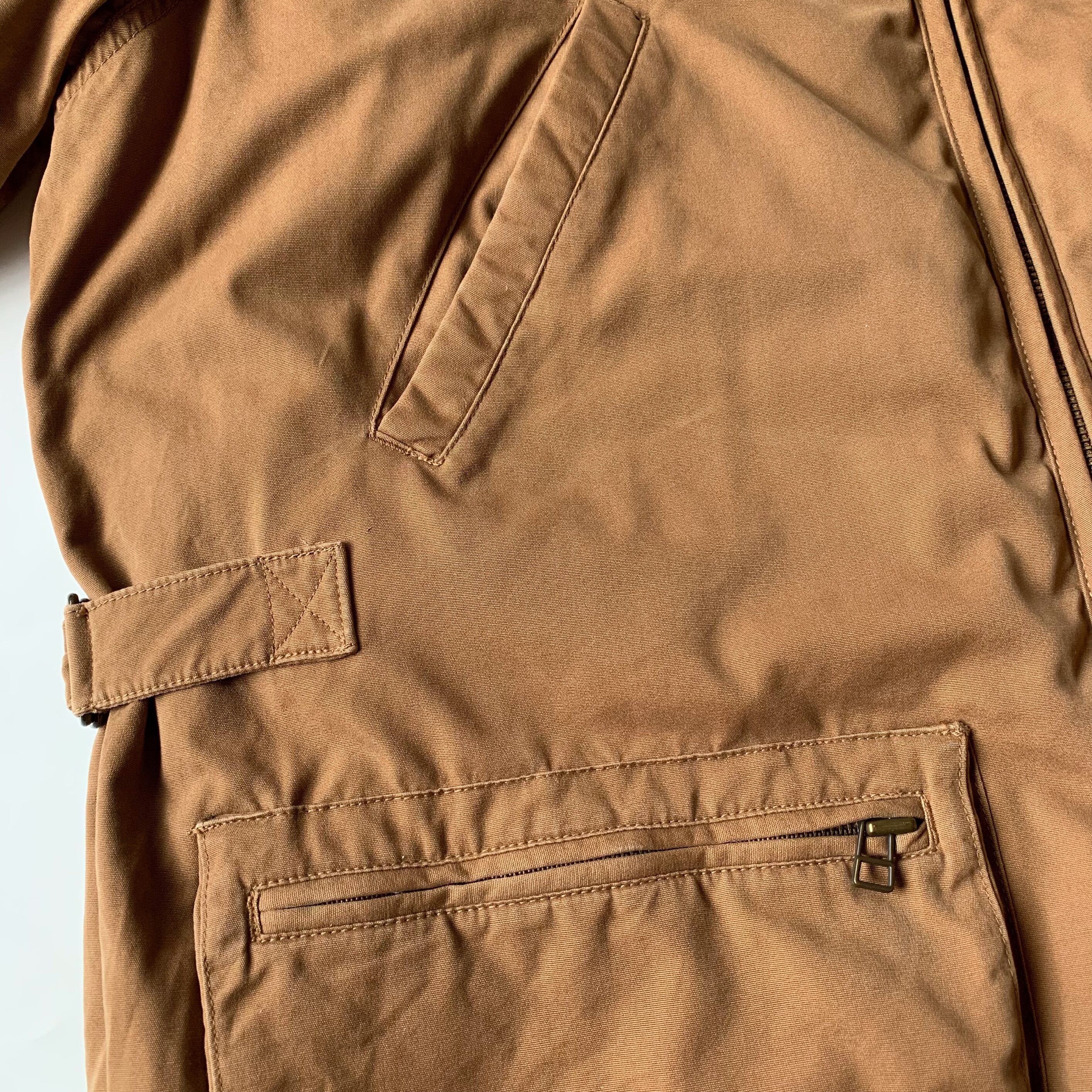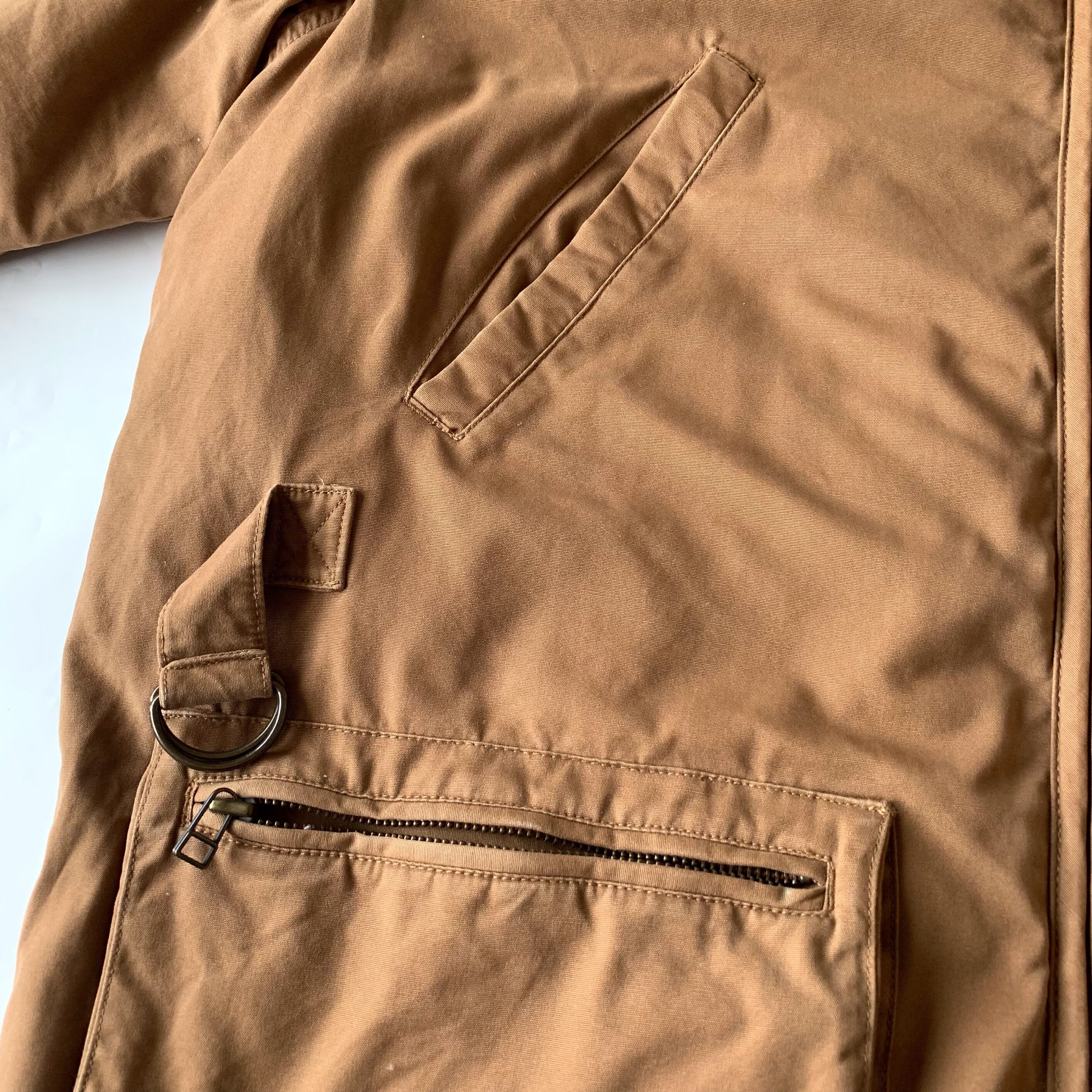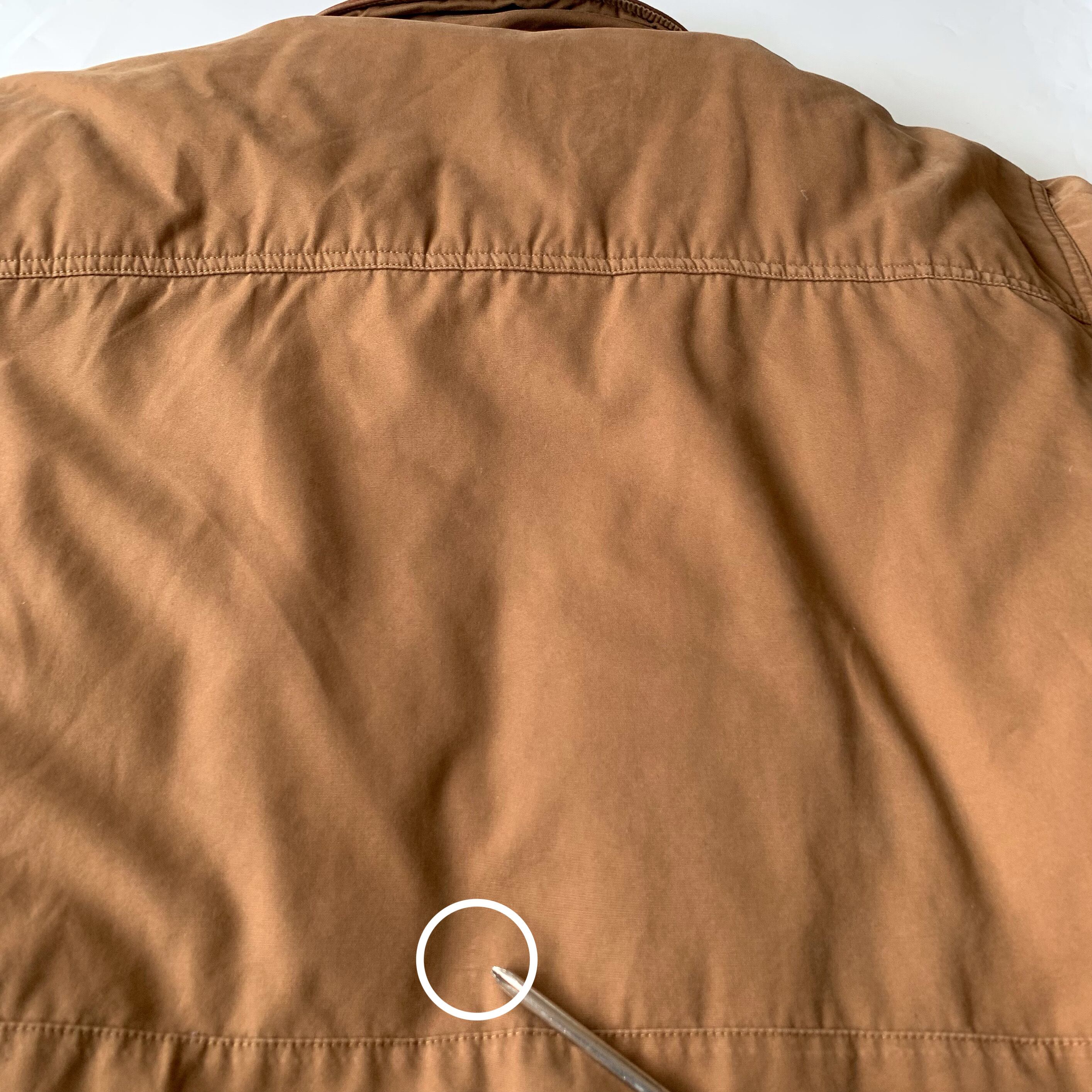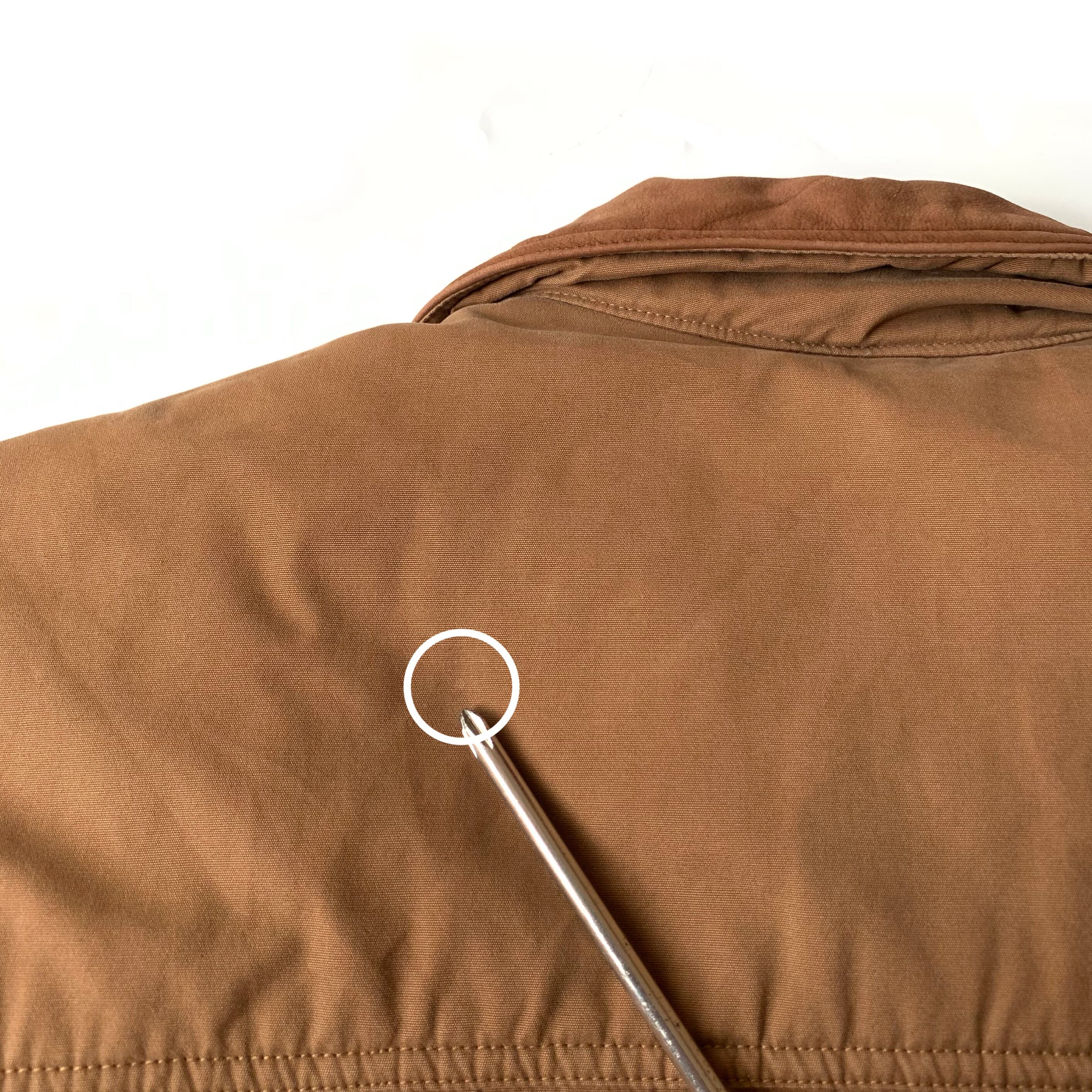コットンシェルに襟は本革。両サイドにはアジャスターベルト付きです。