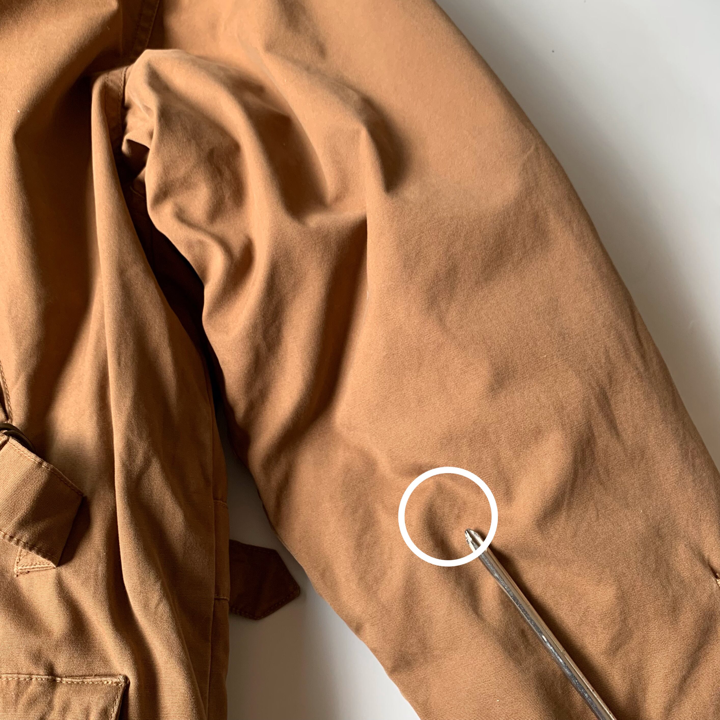 ボディ裏地は肌触りのよいチェック模様のコットンフランネル。袖裏地はナイロン。