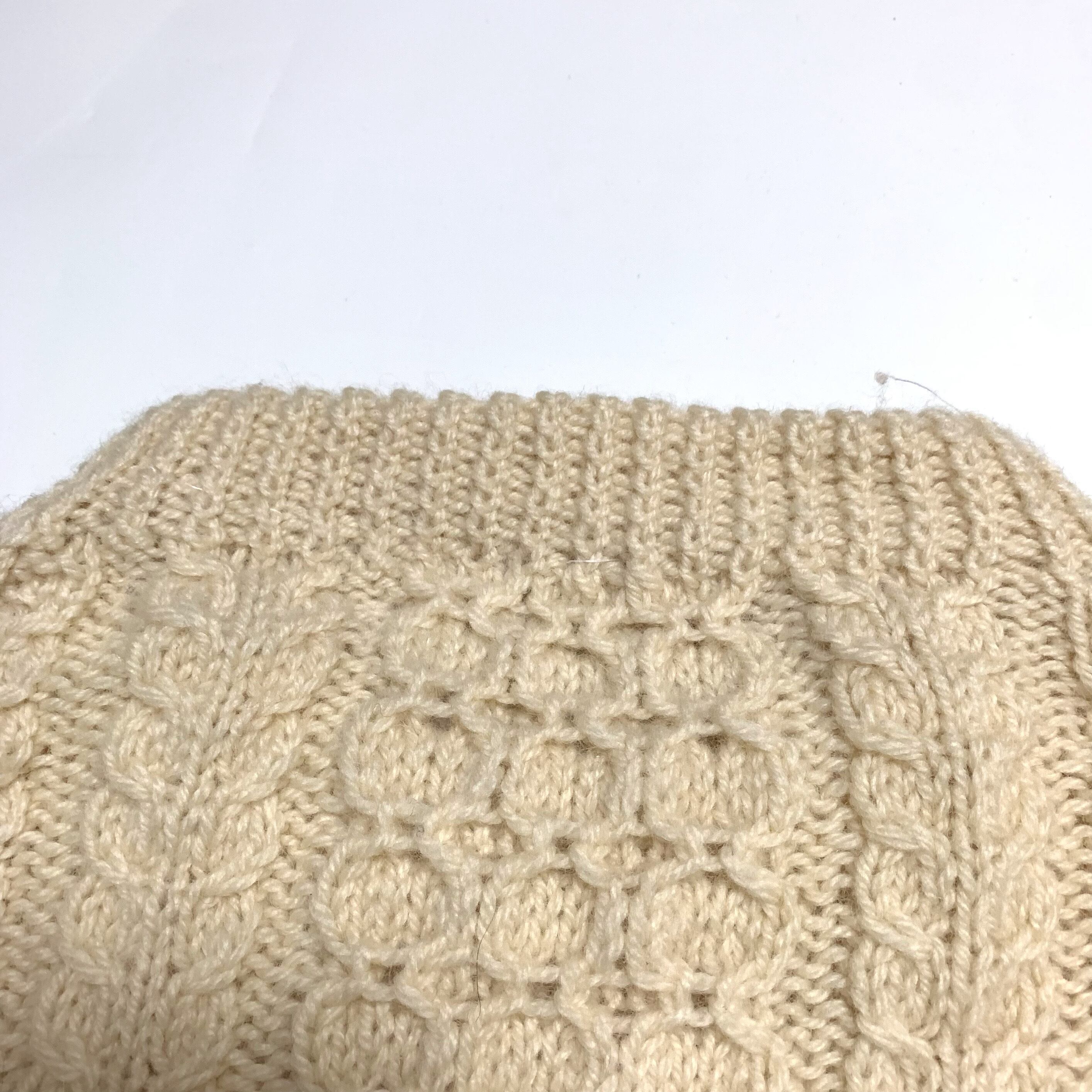 アラン織りの発祥と言われるアイルランド製でHAND KNITの温もりを感じます。
