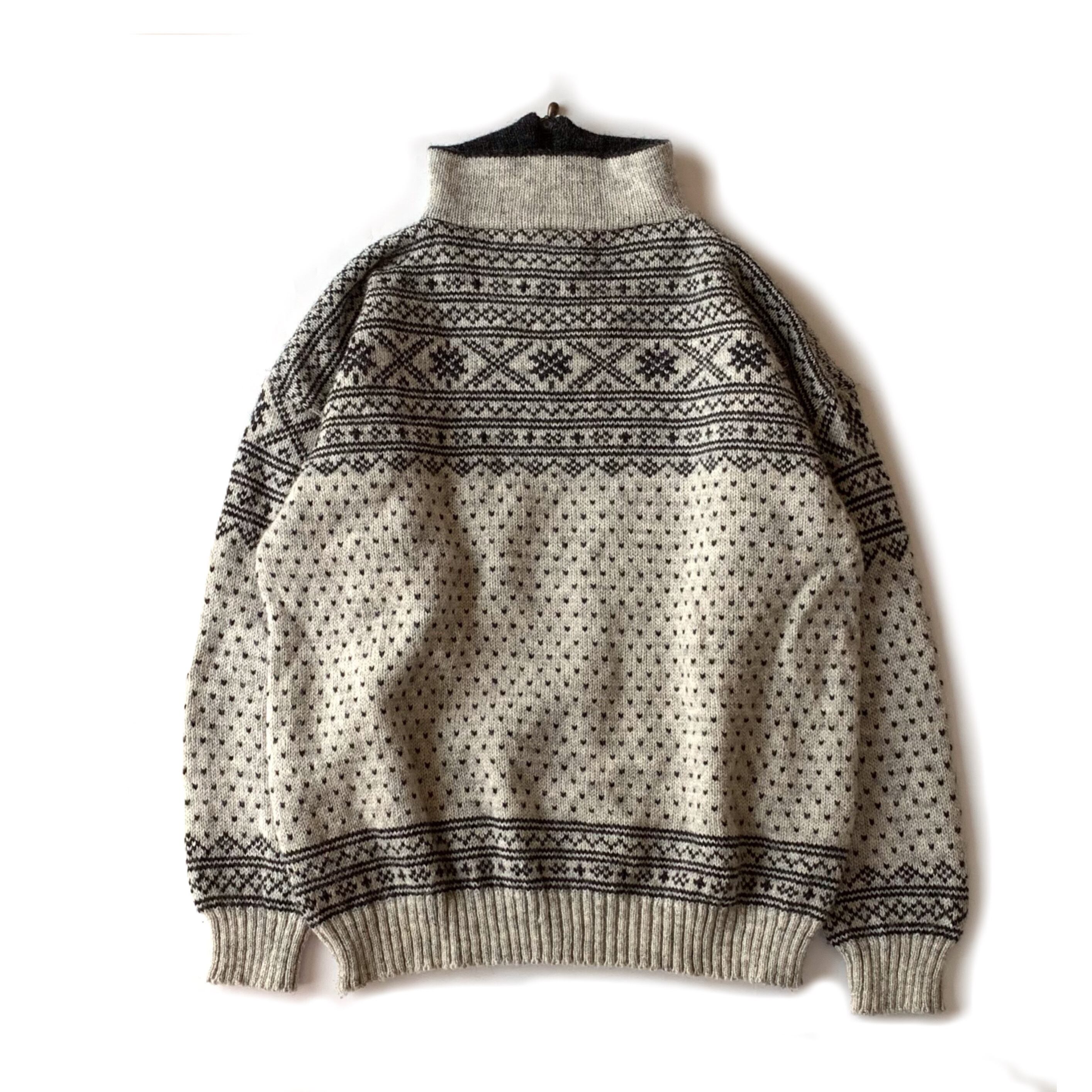 SKOVIDALのノルディック柄ハーフジップセーター。ノルディック柄でよく見かけるノルウェー製ではなく、デンマーク製の1着。