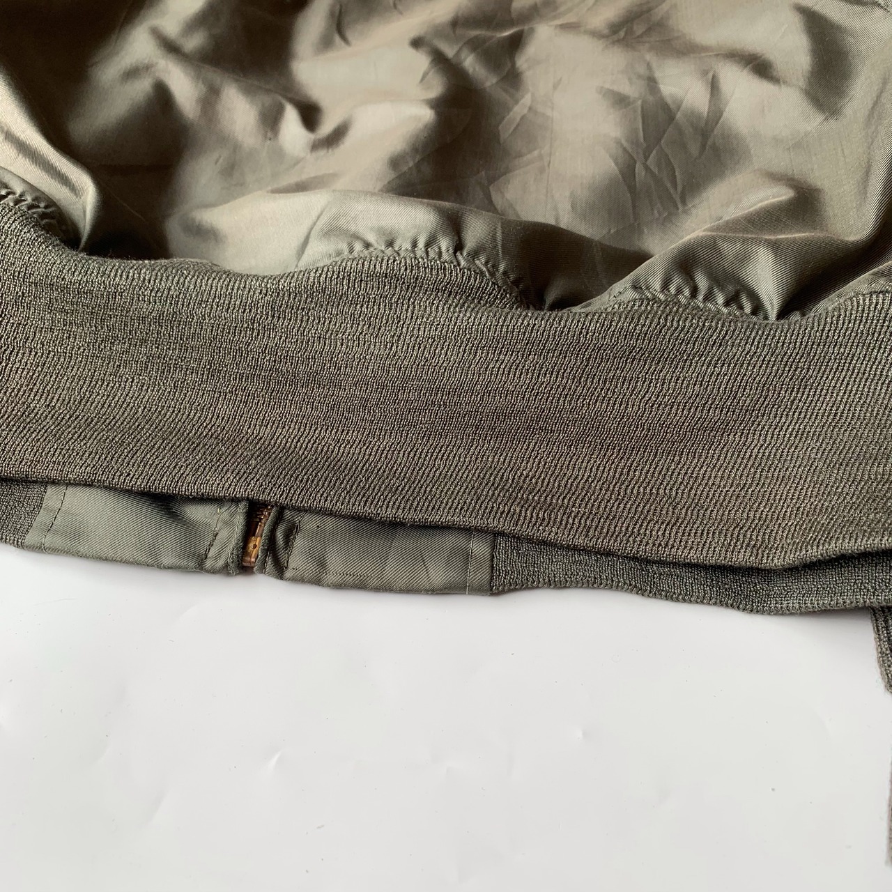 ・後身頃 左脇下、袖先、ジッパーフライ部分にステッチ抜けがございます(4.9枚目の写真)