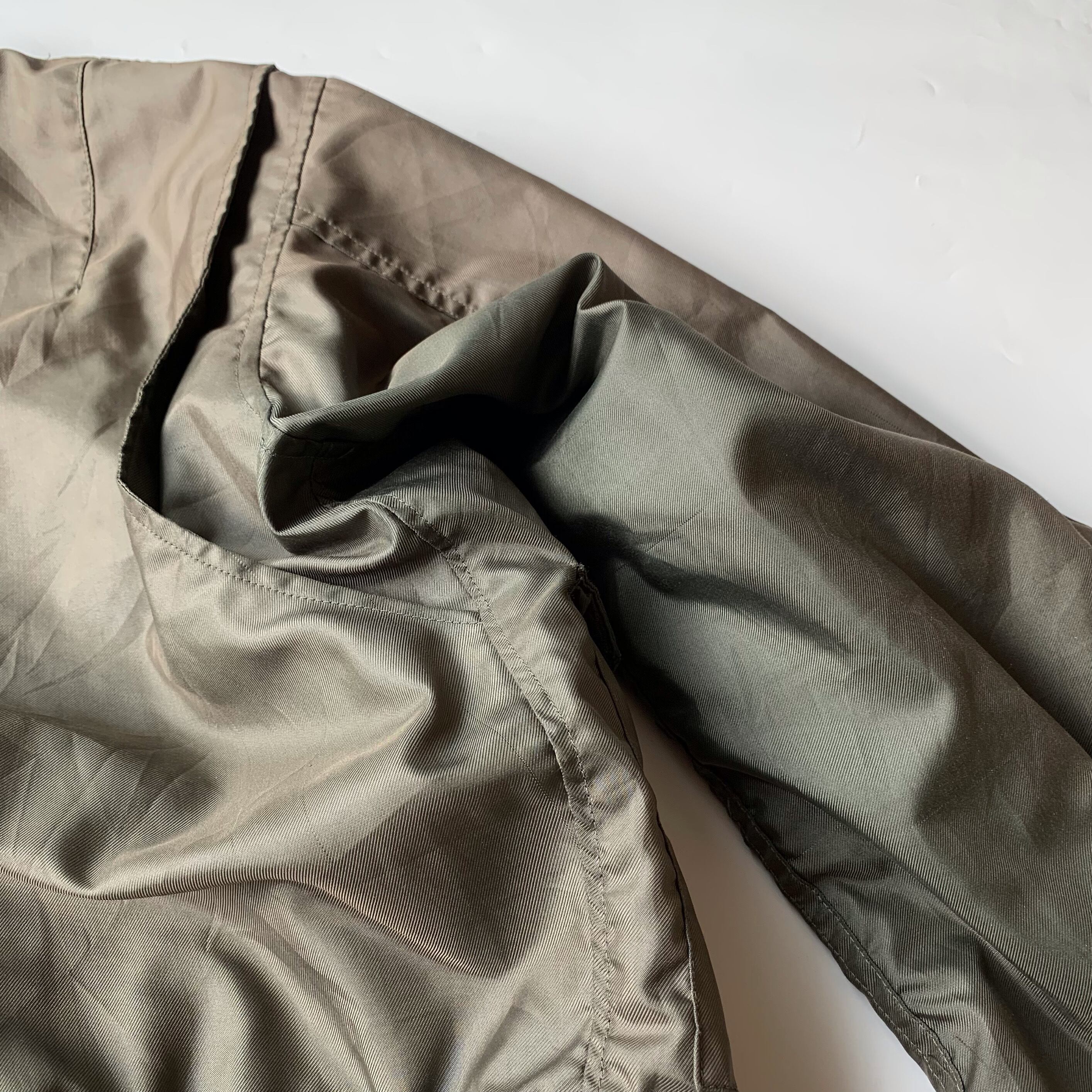 こちらは背面にアクションプリーツが付いた初期型。プリーツは狭い航空機内で機器の突起類などに引っかかることが問題になり1980年に撤廃されました(CWU-36/Pの初期型、アクションプリーツ付きは2年ほどしか支給されていないそうです)