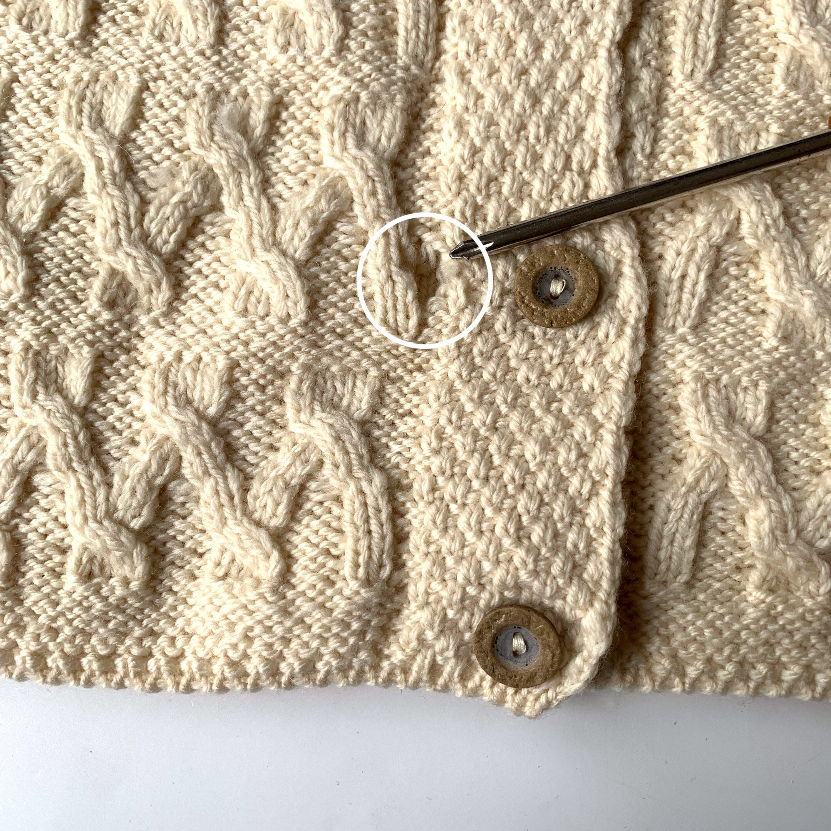 上質な100% PURE NEW WOOLのアラン織りニットで