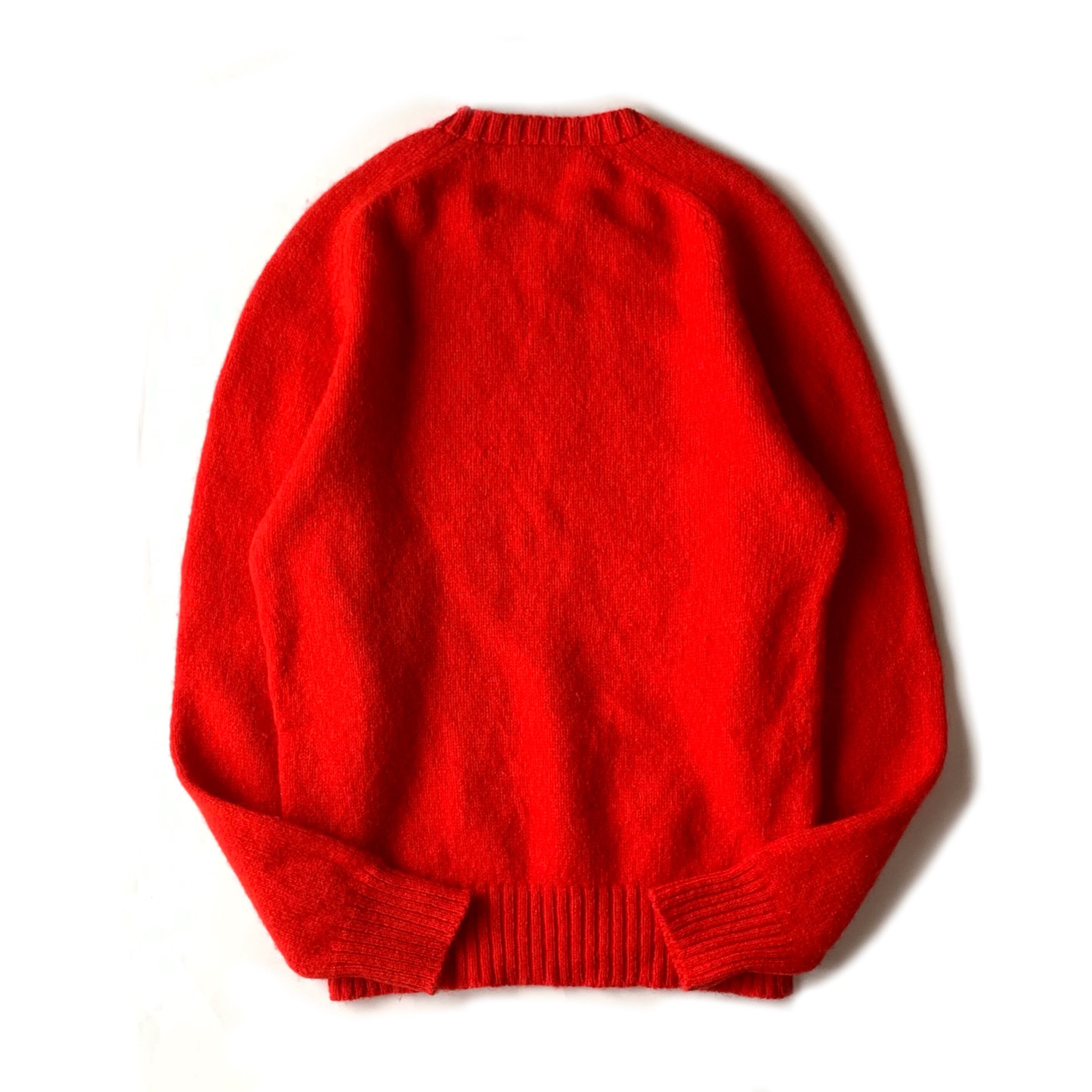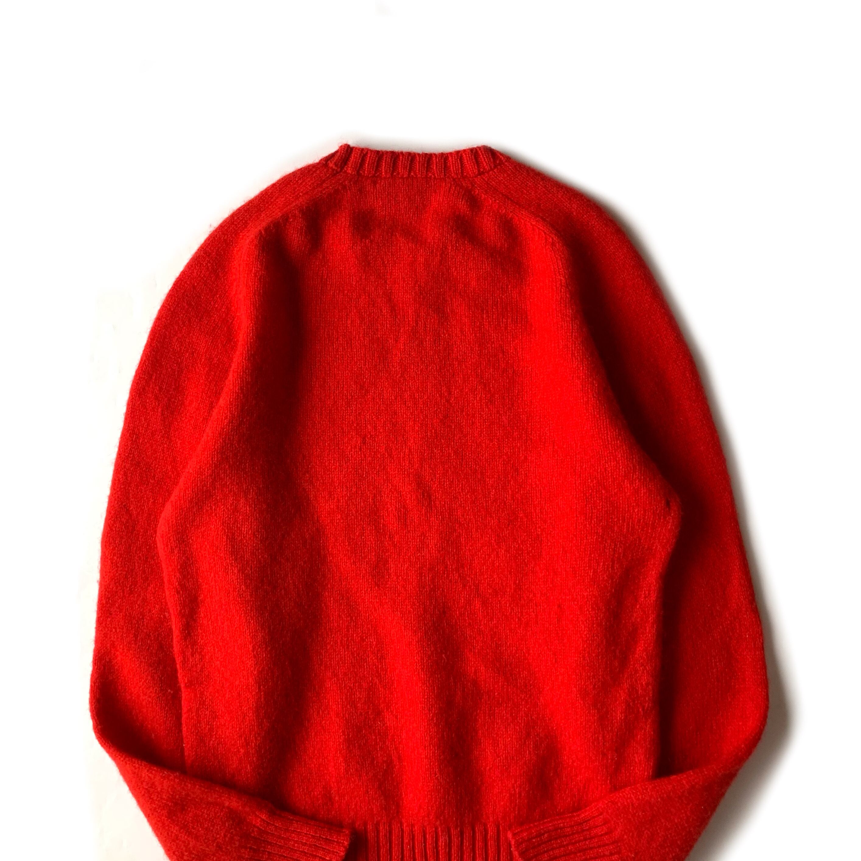 高品質な素材にこだわり、今回のニットはシェットランドウールを使用したニットセーター。厳しい寒さで育った羊毛は独特のハリと艶がございます。