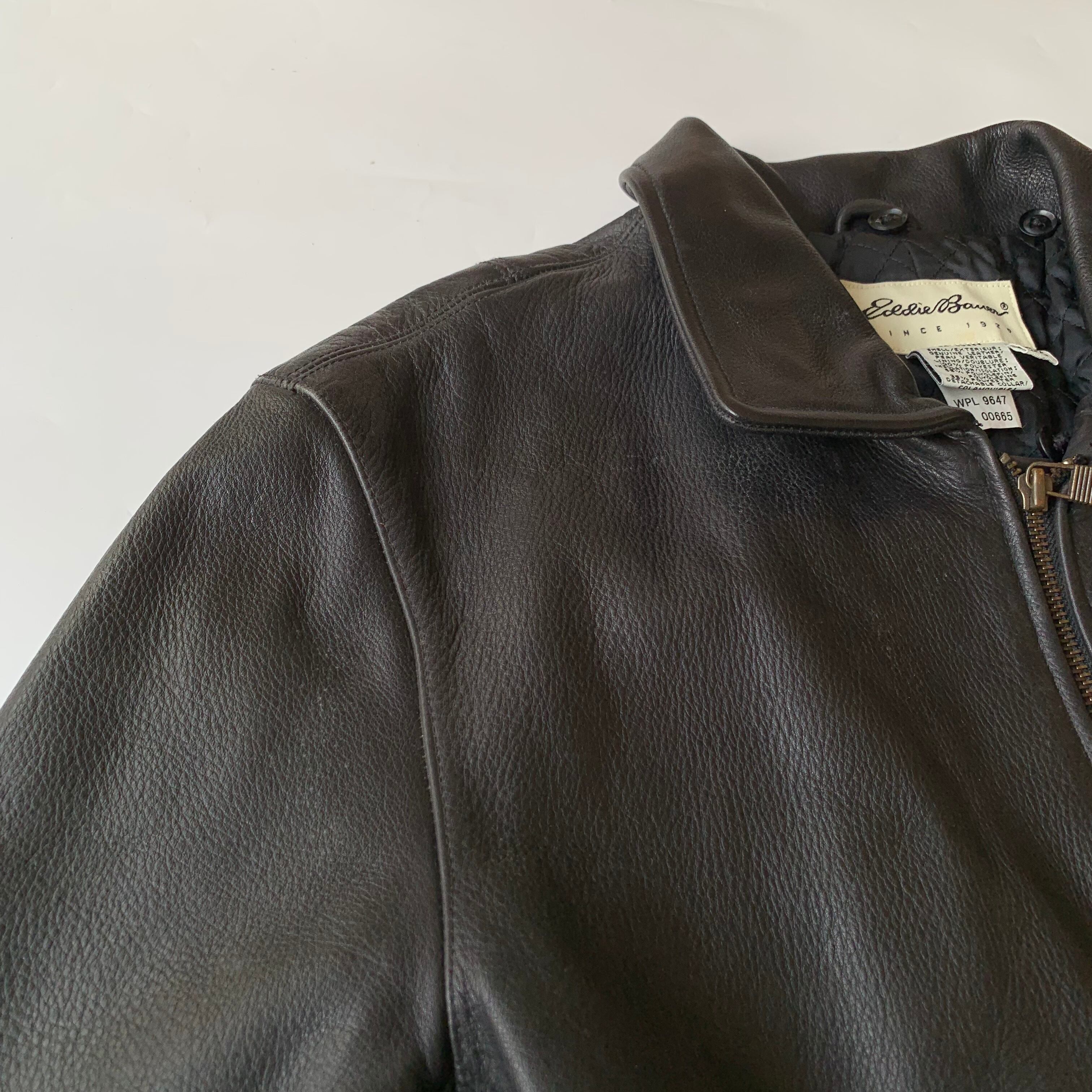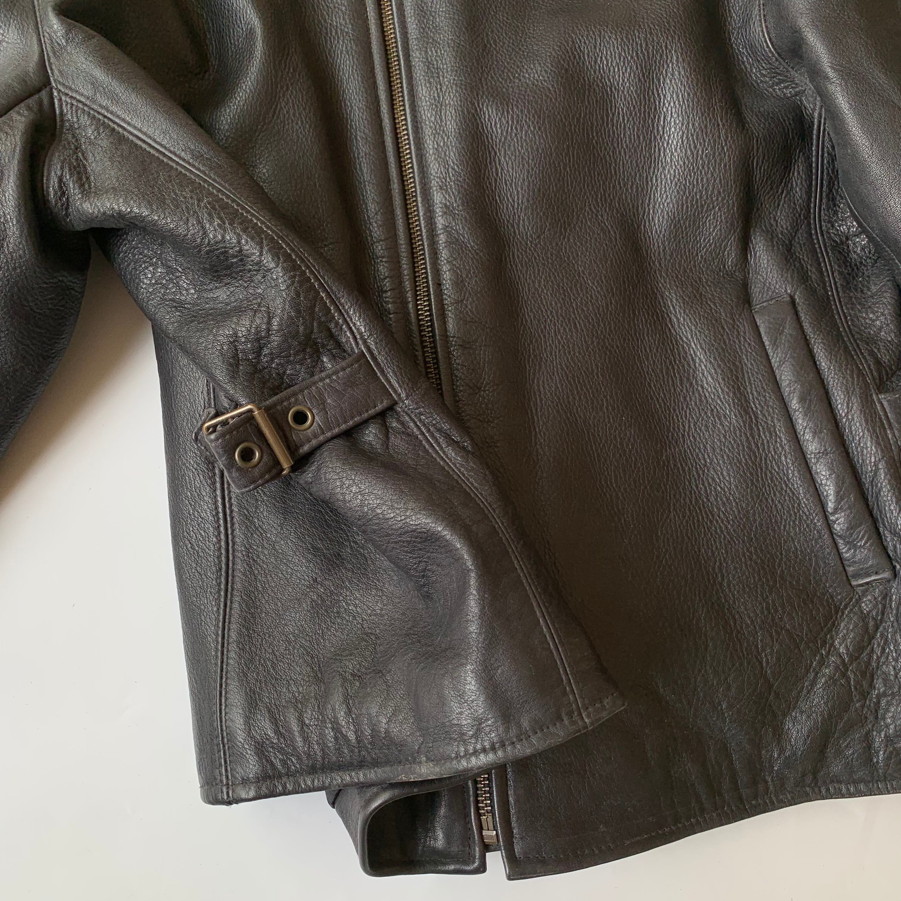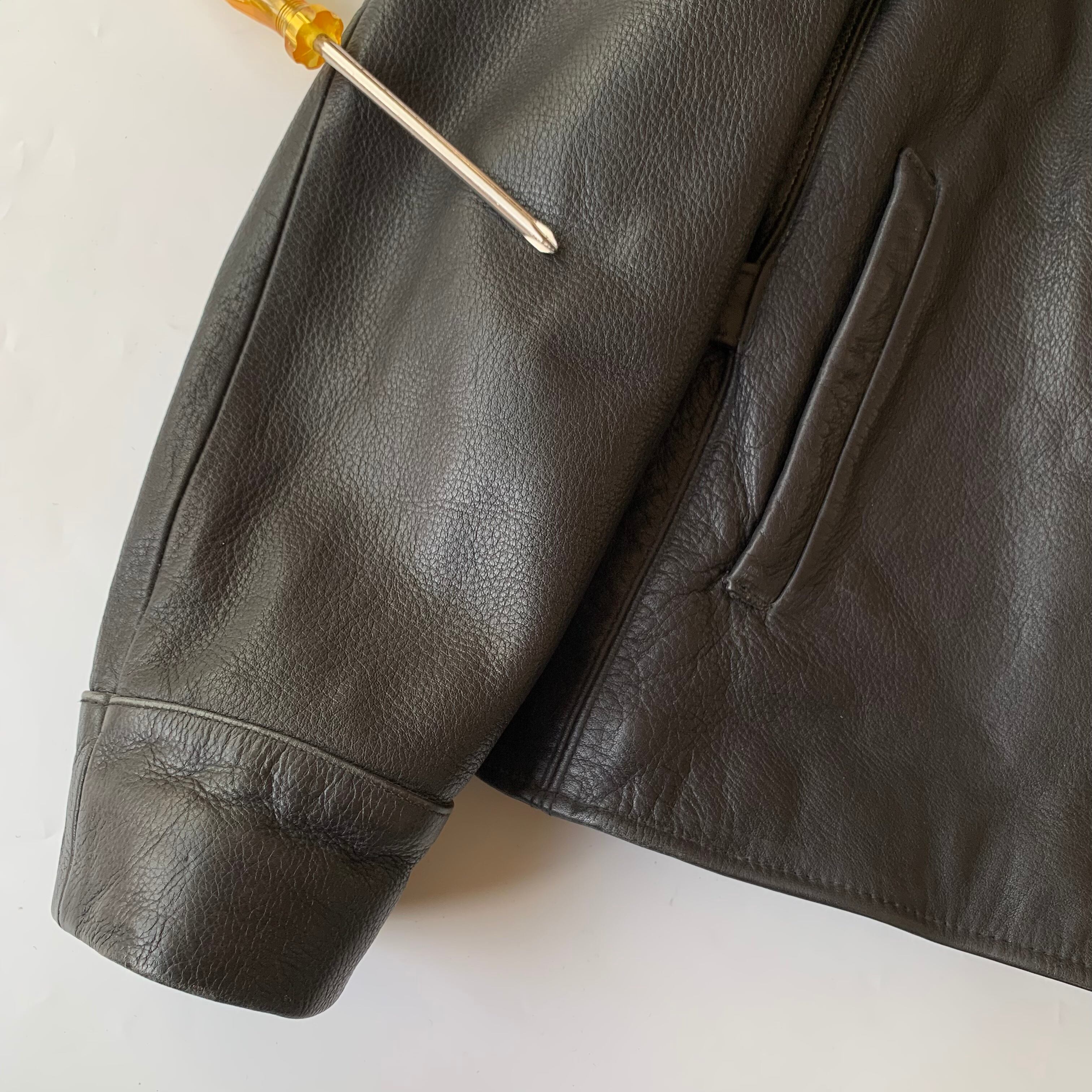 こちらは90-00年代頃のレザージャケット。本革のシェルに、ポリエステルのキルティング裏地付きで防寒性は抜群。