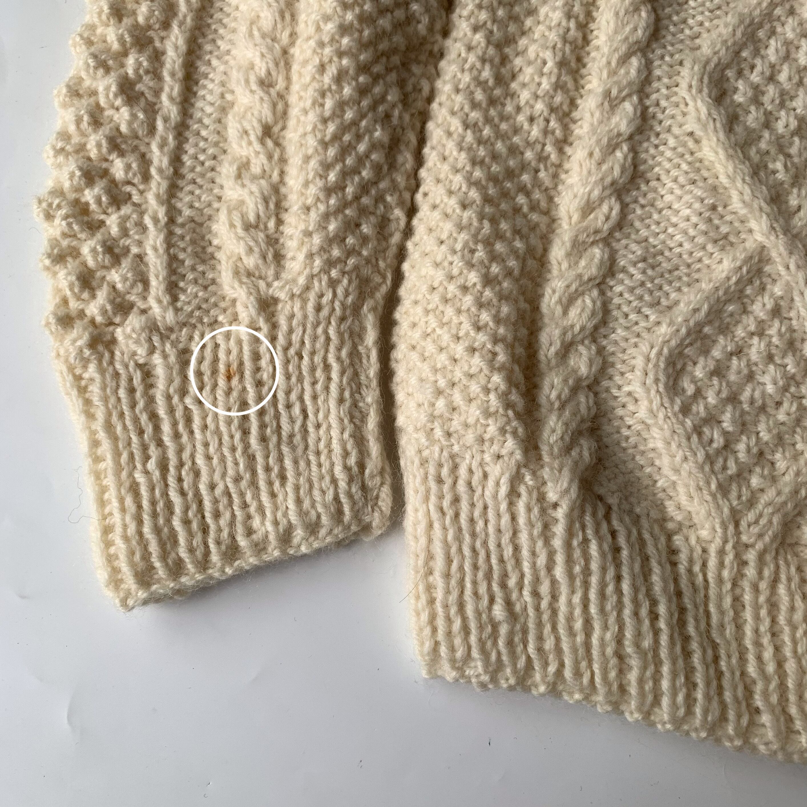 アラン織りの発祥と言われるアイルランド製でHAND KNITの温もりを感じます。