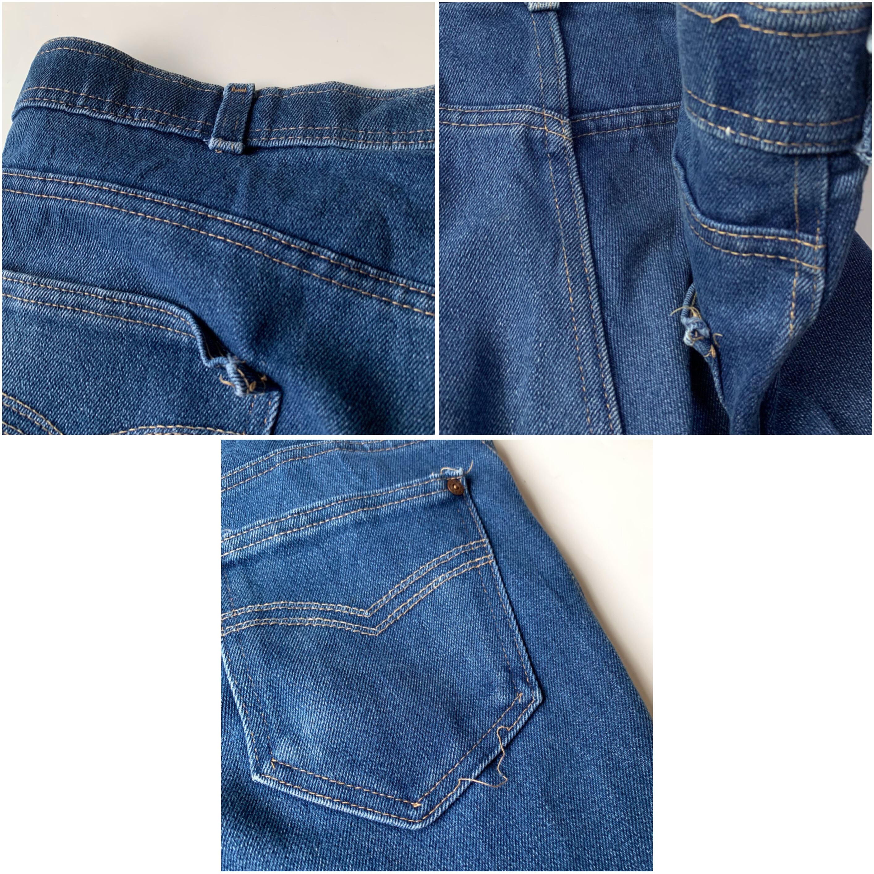 表記ございませんがおそらくポリエステル棍です。伸縮性のあるストレッチジーンズ。