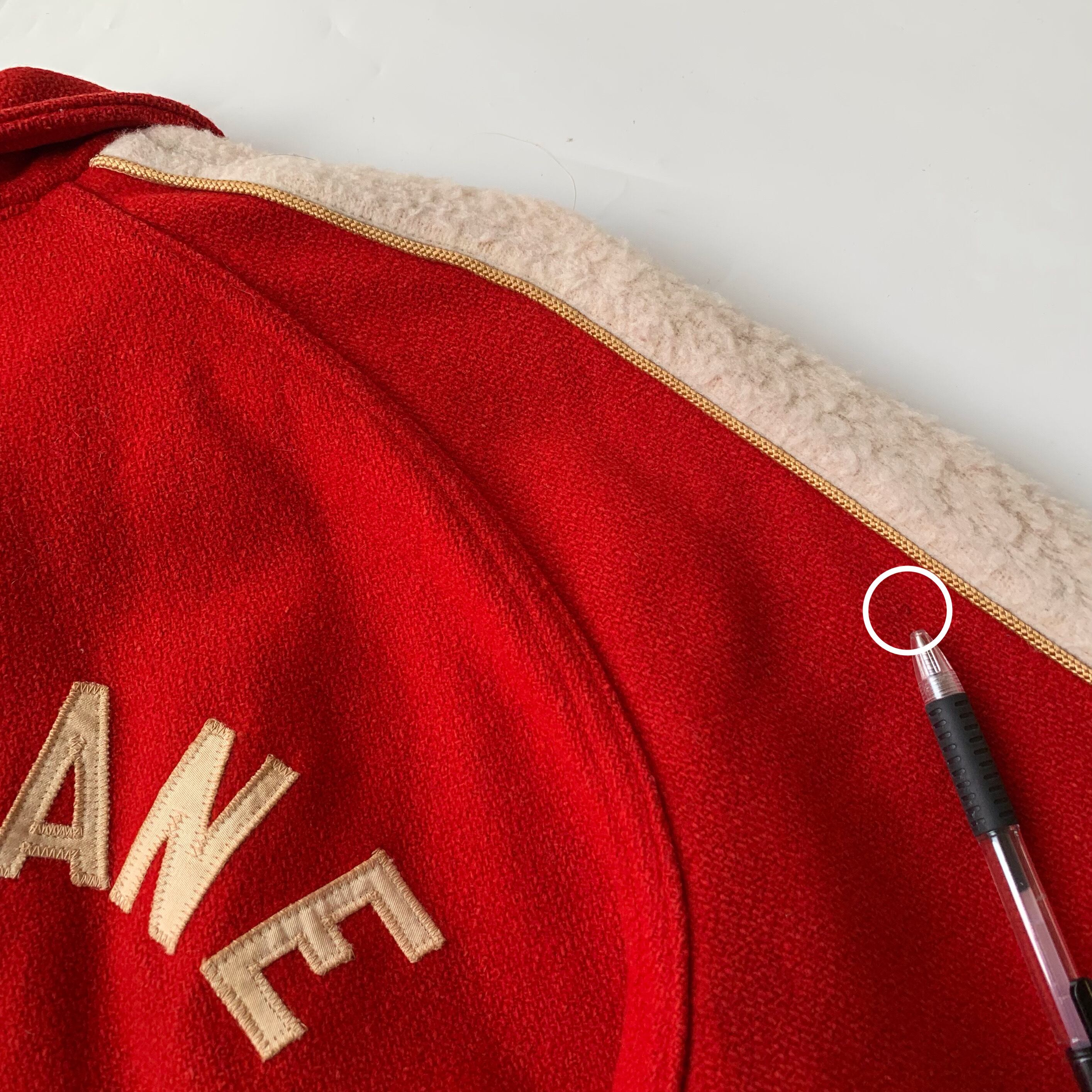 メルトンウール・裏地サテン。”felco”の刻印入スナップボタン。バックには”HURRICANE(ハリケーン)”の刺繍。肩ラインはフリースのような素材。