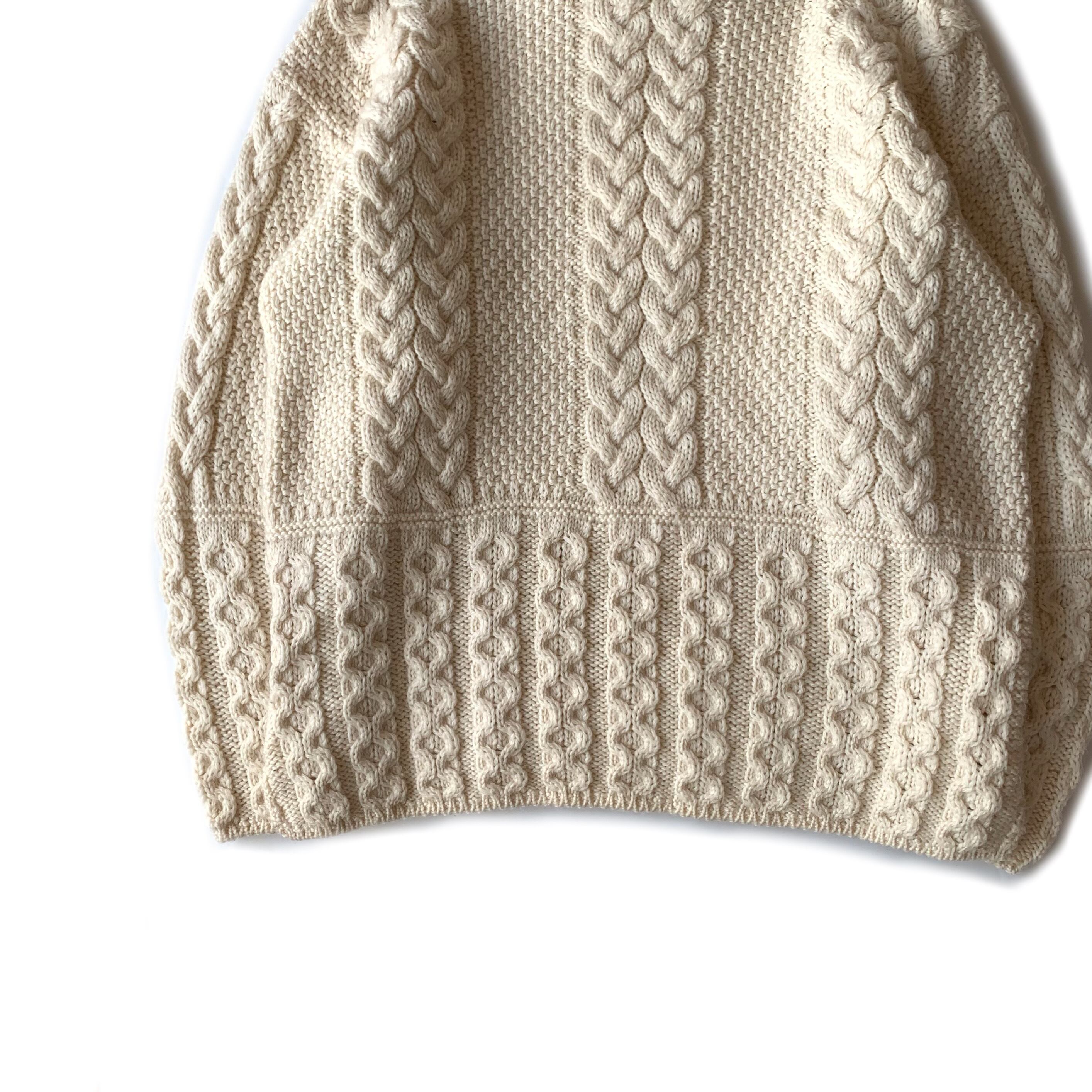 アランニットでは定評のあるclaournic製の1枚で、定番の生成りカラーで合わせやすく、フィッシャーマン ニット特有のしっかりとした作りは本当にお勧めです。