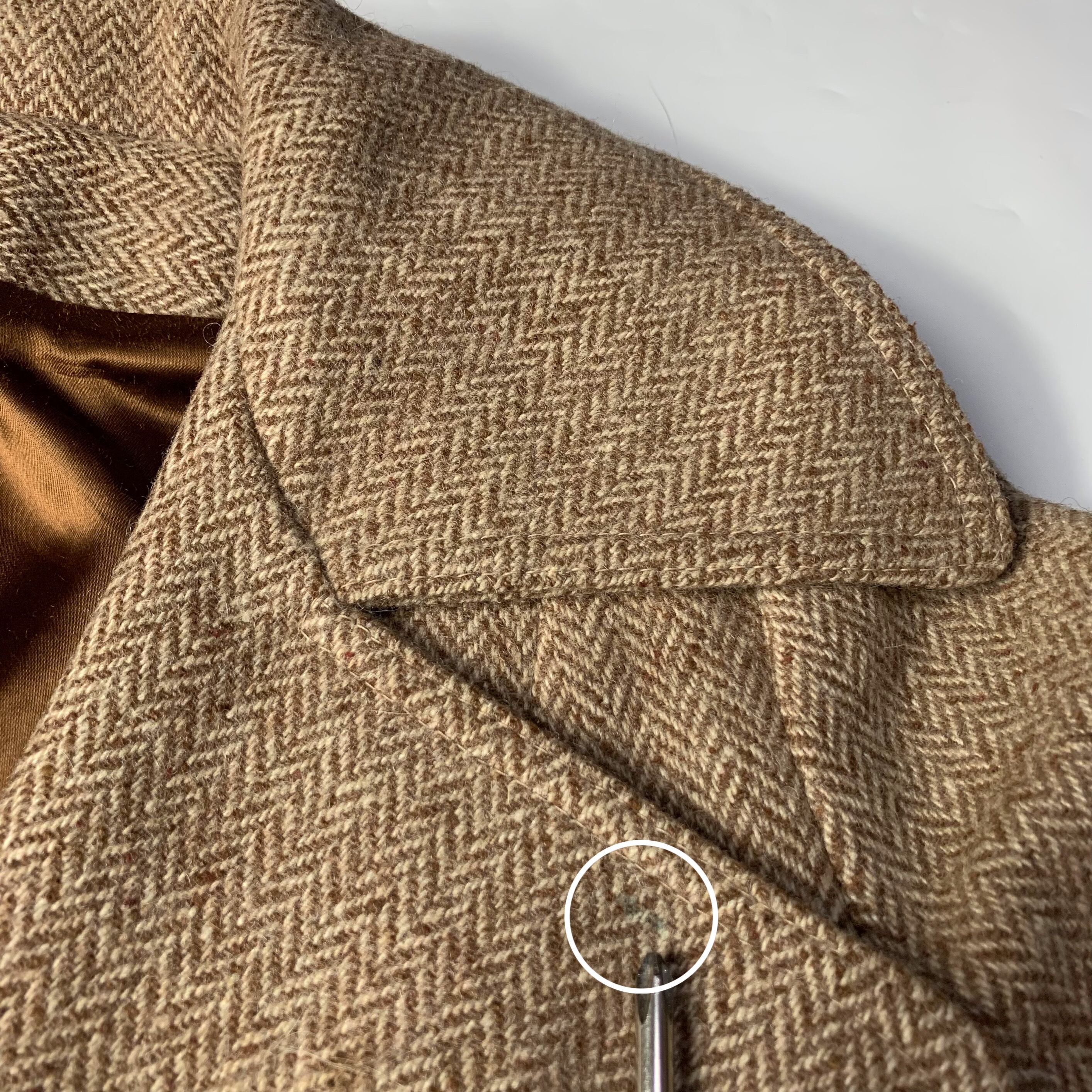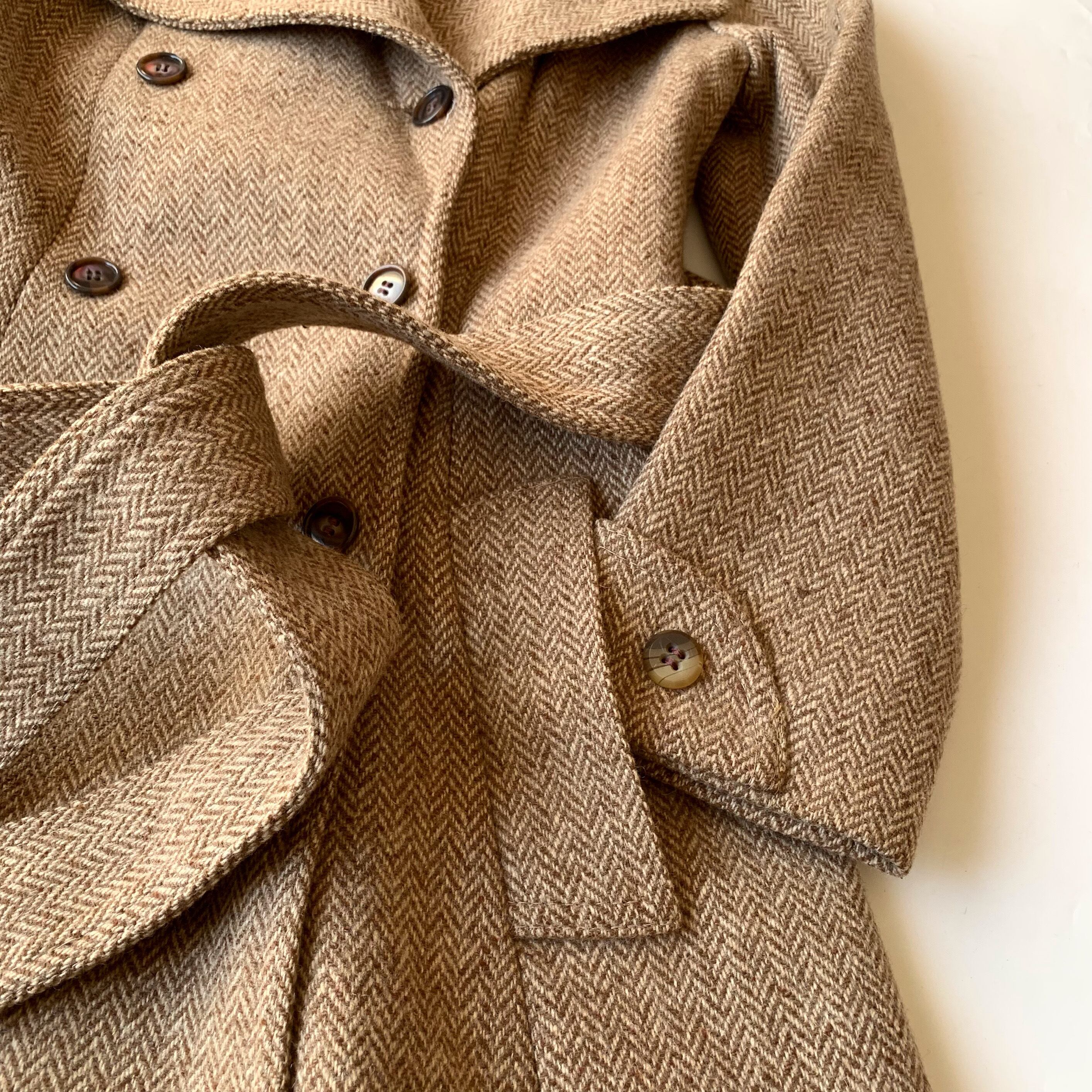 ブラウンカラーの高級感の漂うウールツイード。