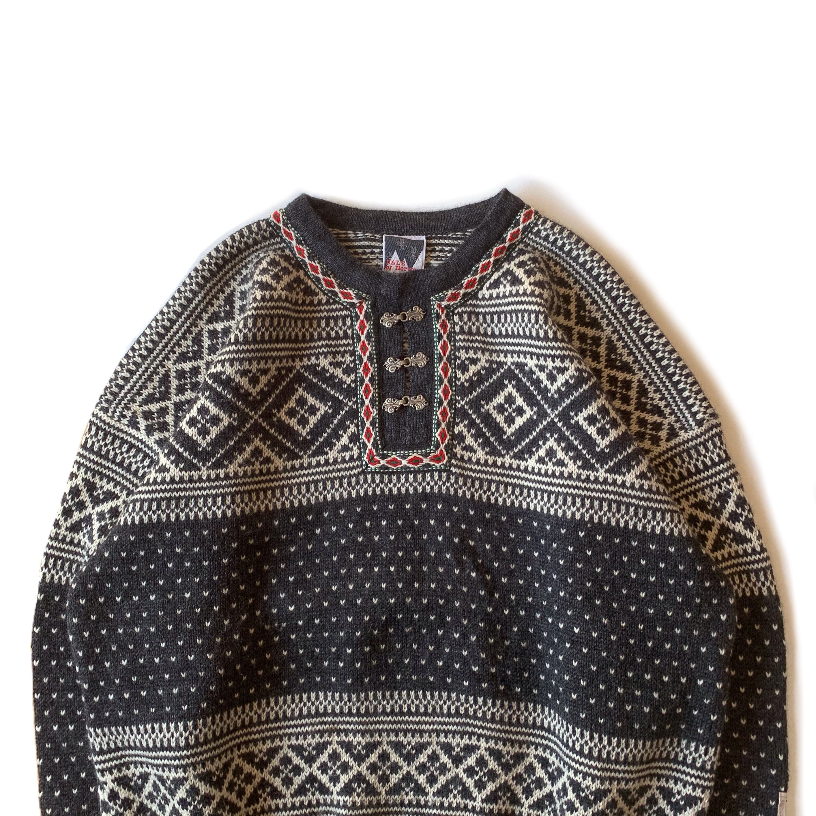 DALEはノルウェーの伝統衣装であるノルディックセーターを古くから作り続ける老舗ブランドで、伝統的な雪柄やルースコスタと言われる点描柄が特徴です。