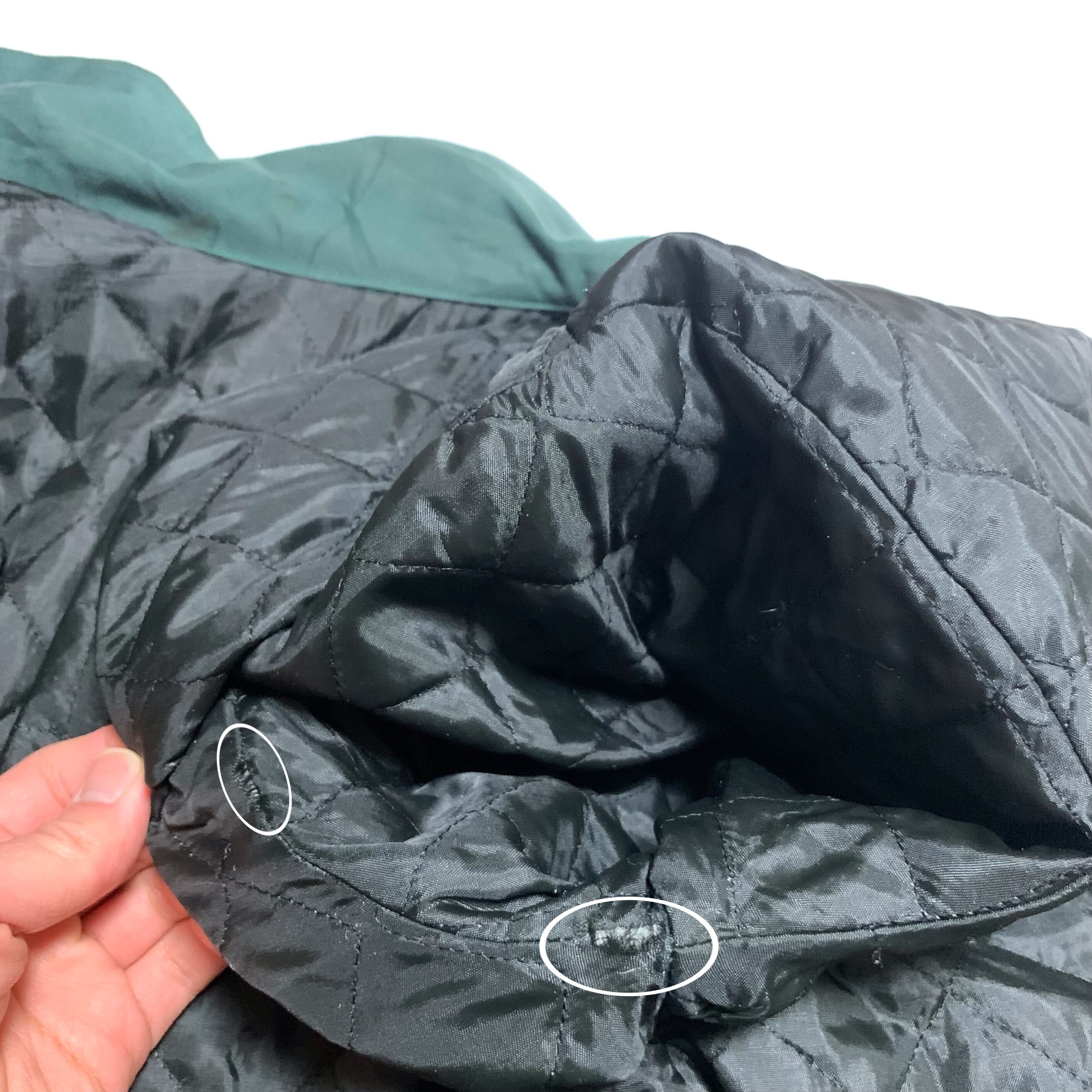 シェルはおそらくポリコットン。ハリのある生地感です。裏地はナイロンキルティングとなっており保温性は抜群です。