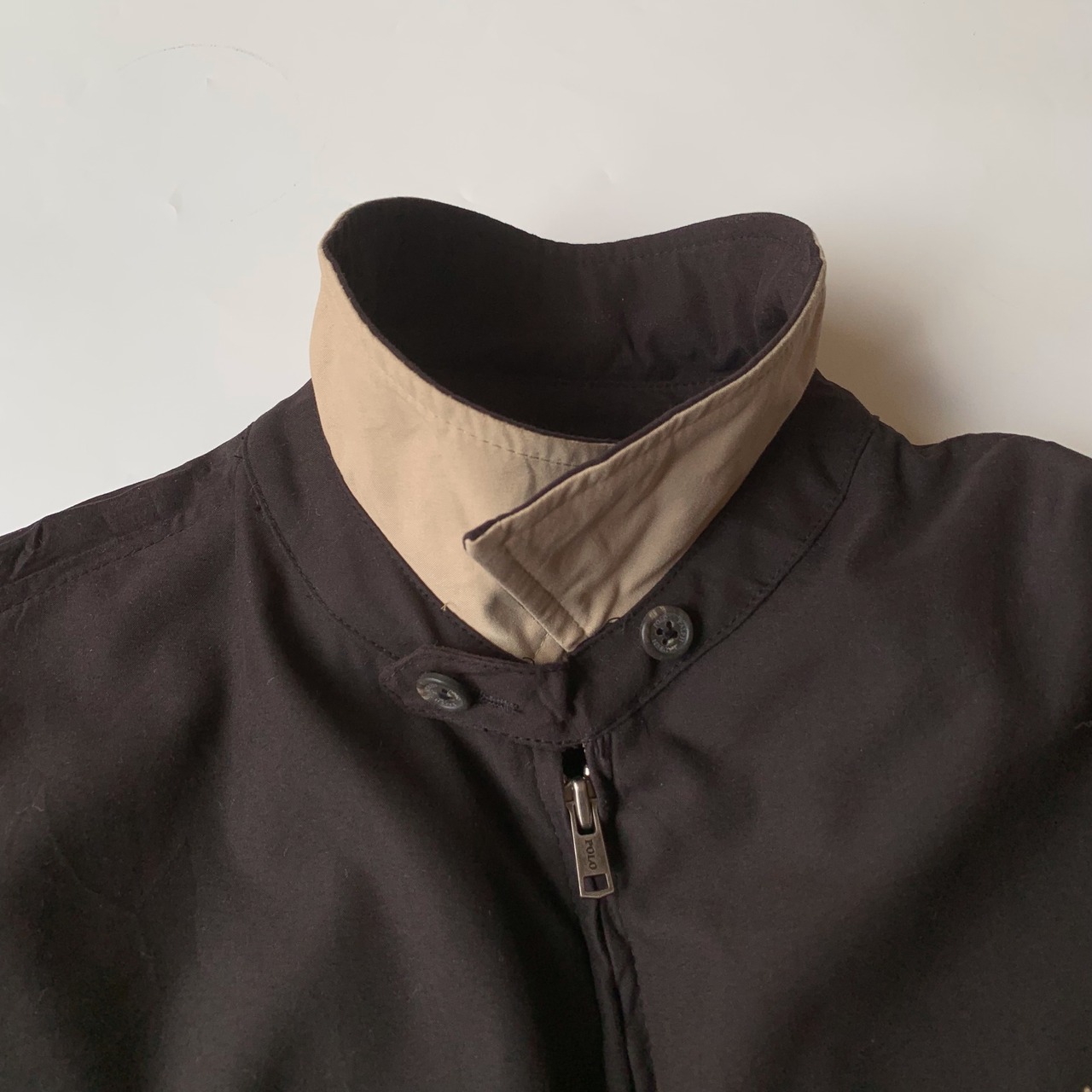 襟付き・フロントジップのスイングトップタイプのデザイン。左胸のポロポニーのロゴ刺繍がさりげないアクセントに。