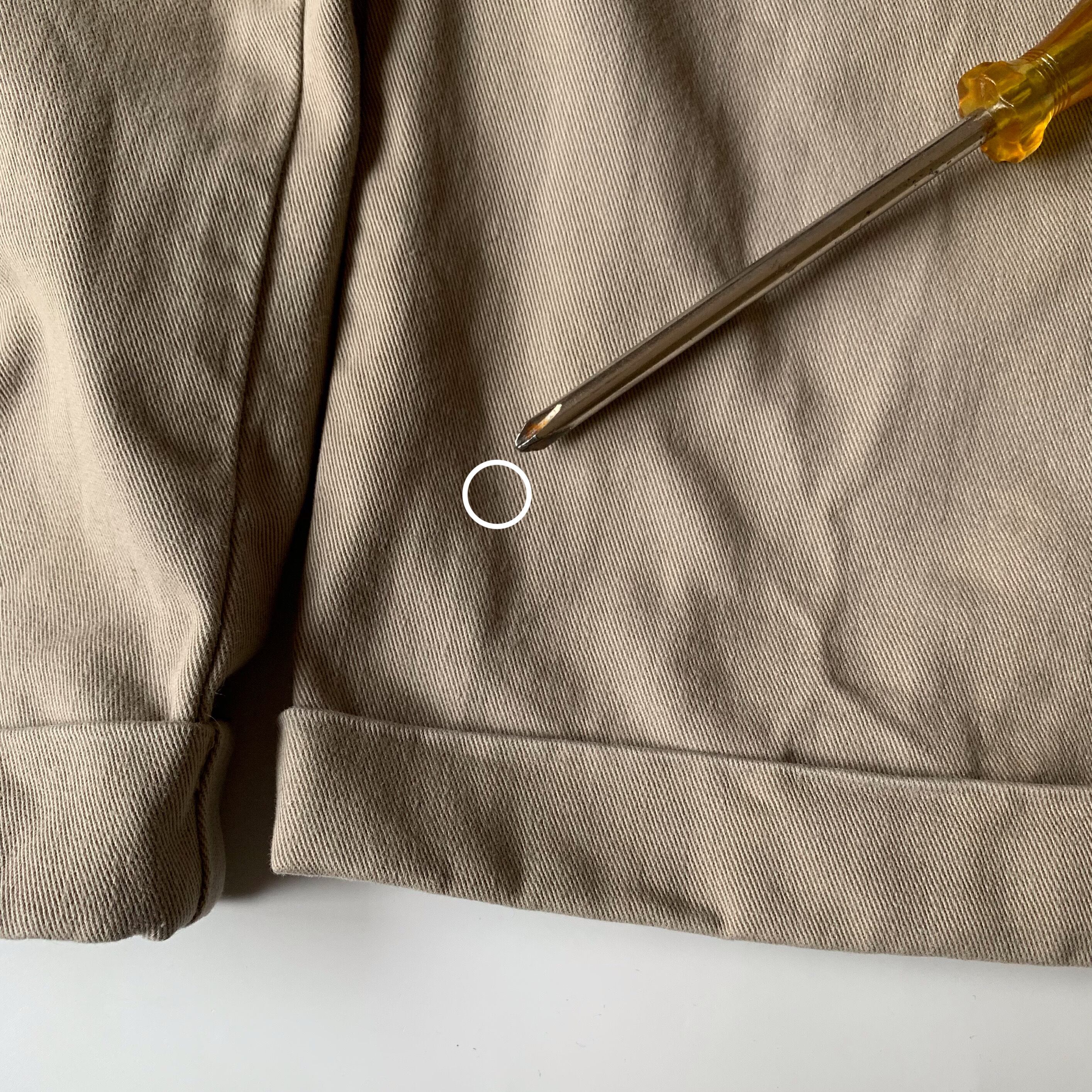 ・裾はダブル仕上げとなっておりますが、裾の縫合が取れております。