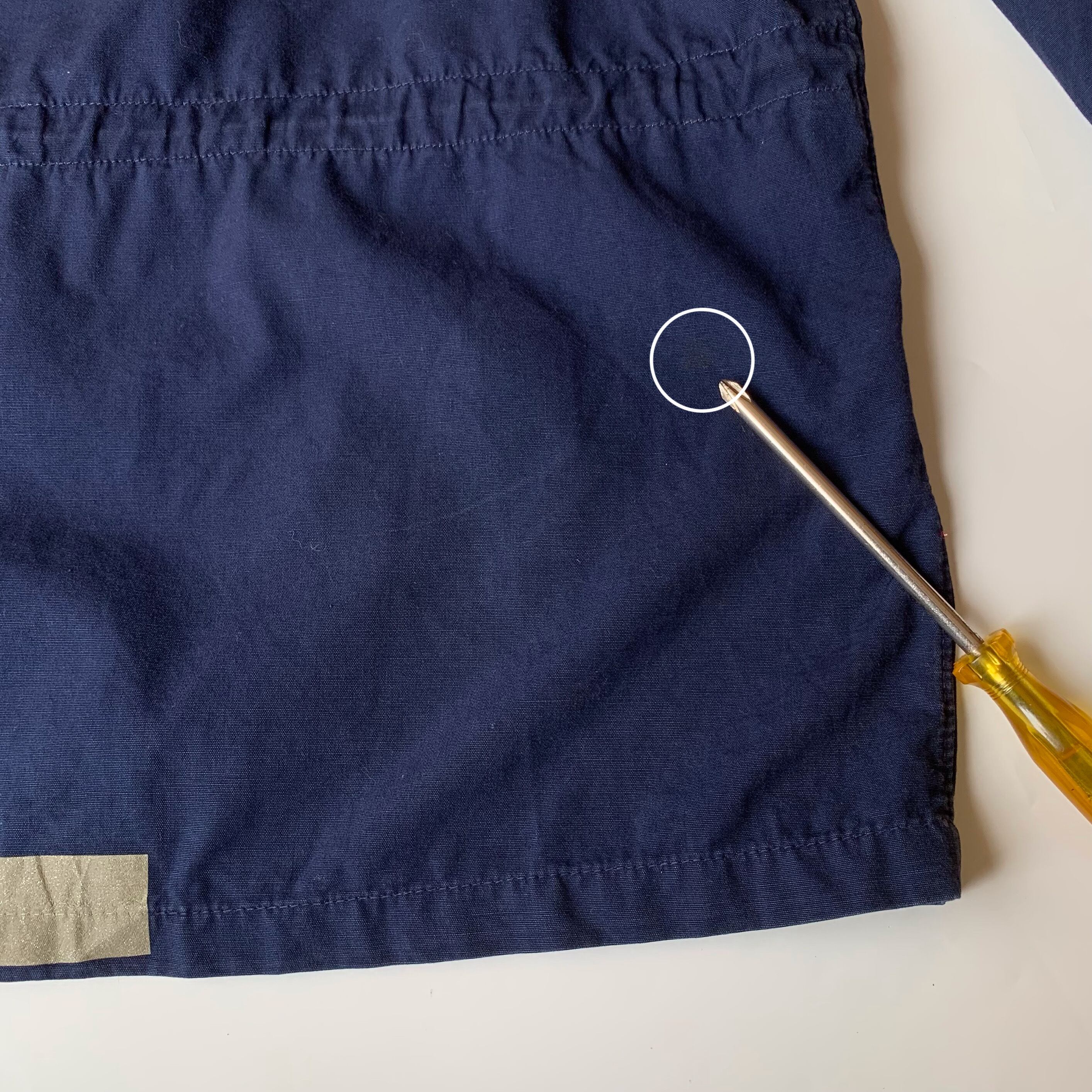 ジッパー開閉の胸ポケット。REX ZIPPER。ウエスト裏部分にドローコードがございます。