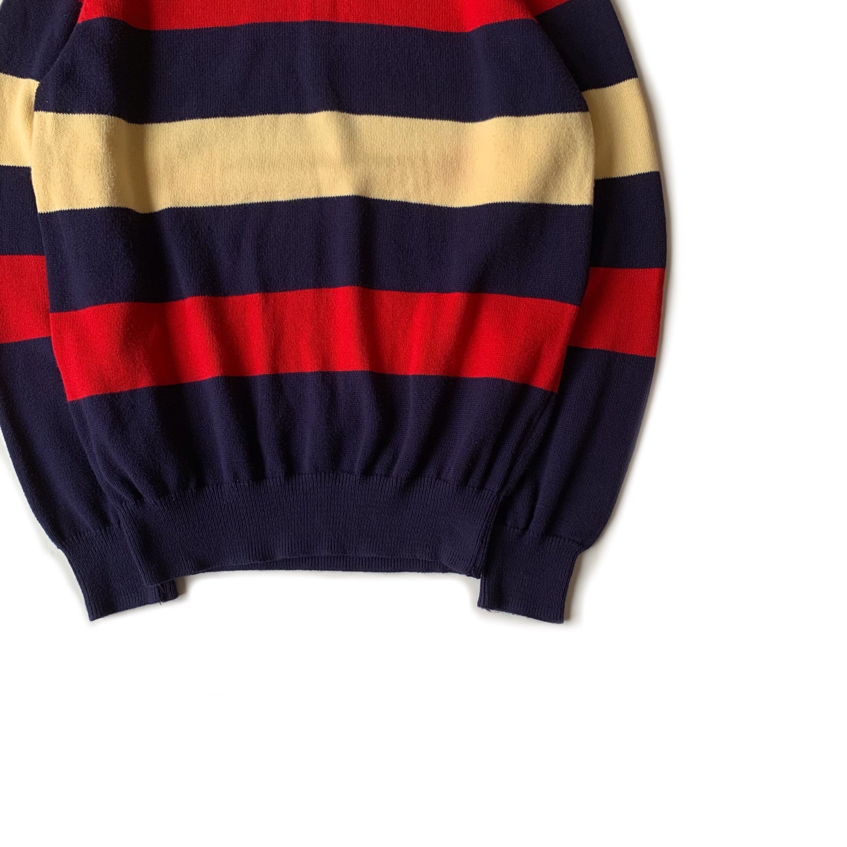 今回ご案内のニットは、マルチカラーの太ピッチボーダーが魅力的なデザインです。