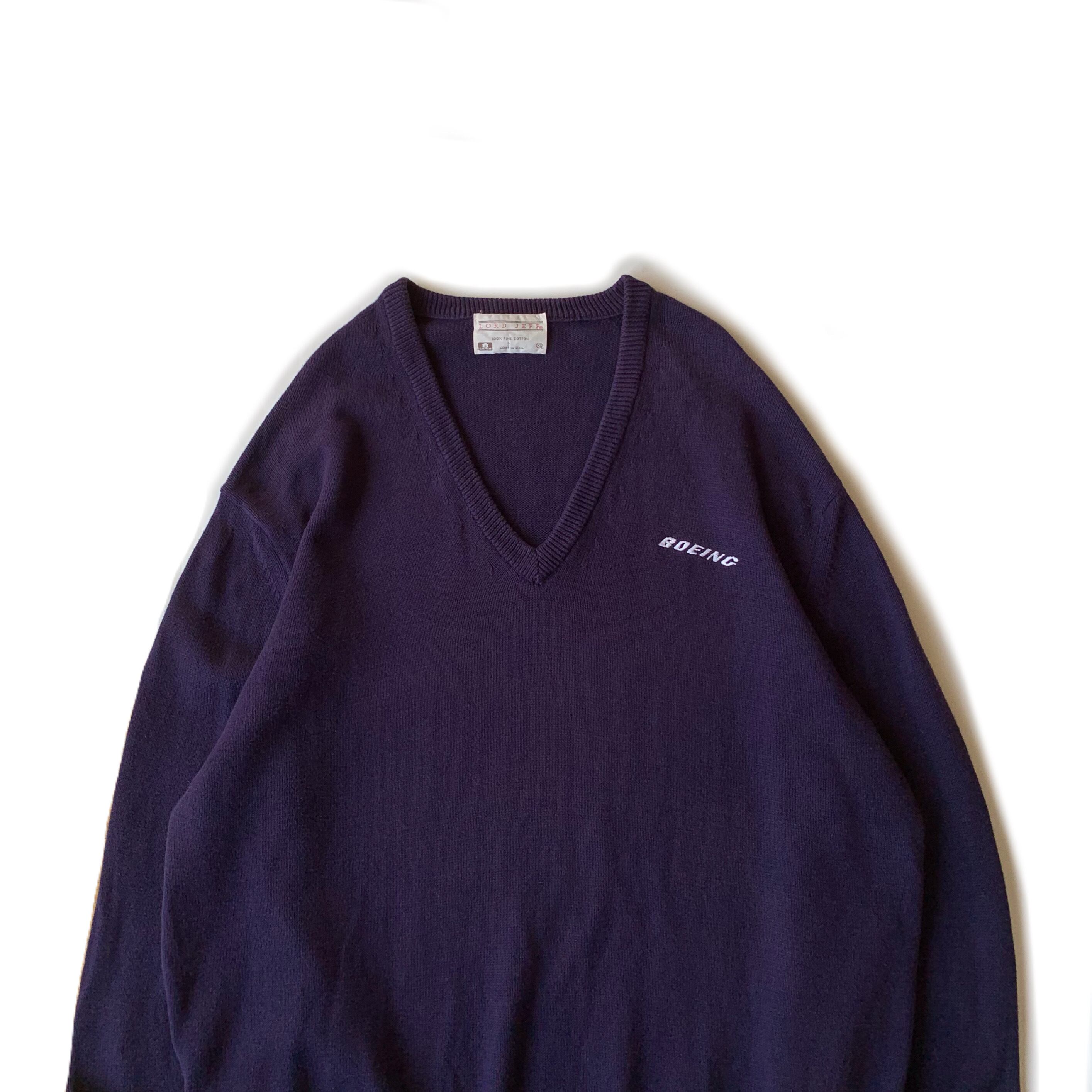 色褪せたネイビーカラーボディが古着らしいテンション。色々な合わせ方で楽しめるVネックセーター