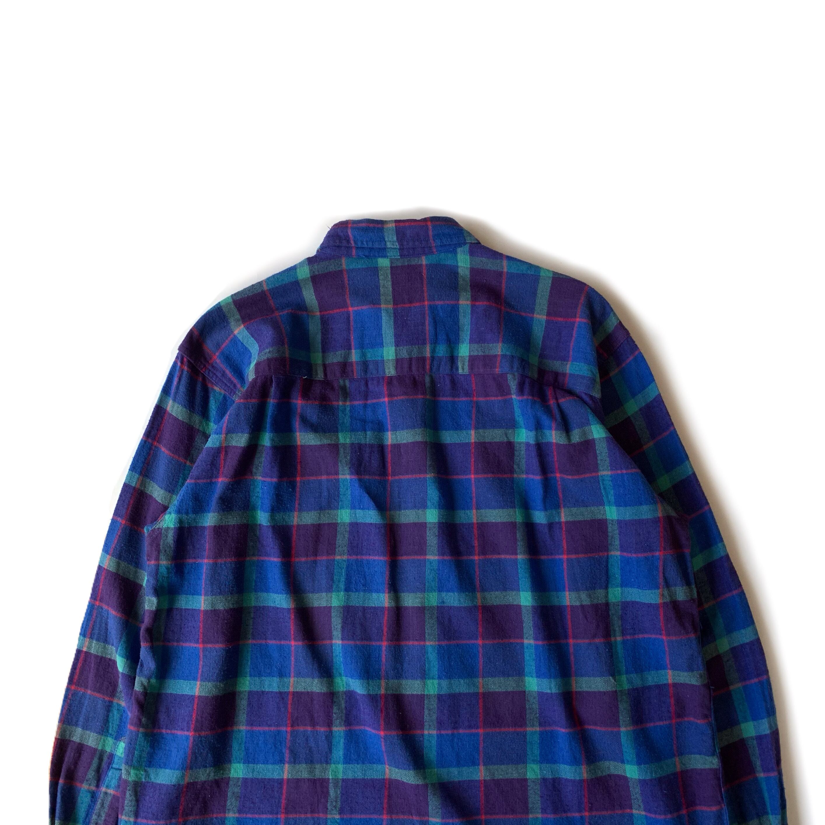 ブルーカラーを基調とした好配色のチェック柄。左胸にはパッチポケット。ボディとも柄が合わせてある丁寧な造り。