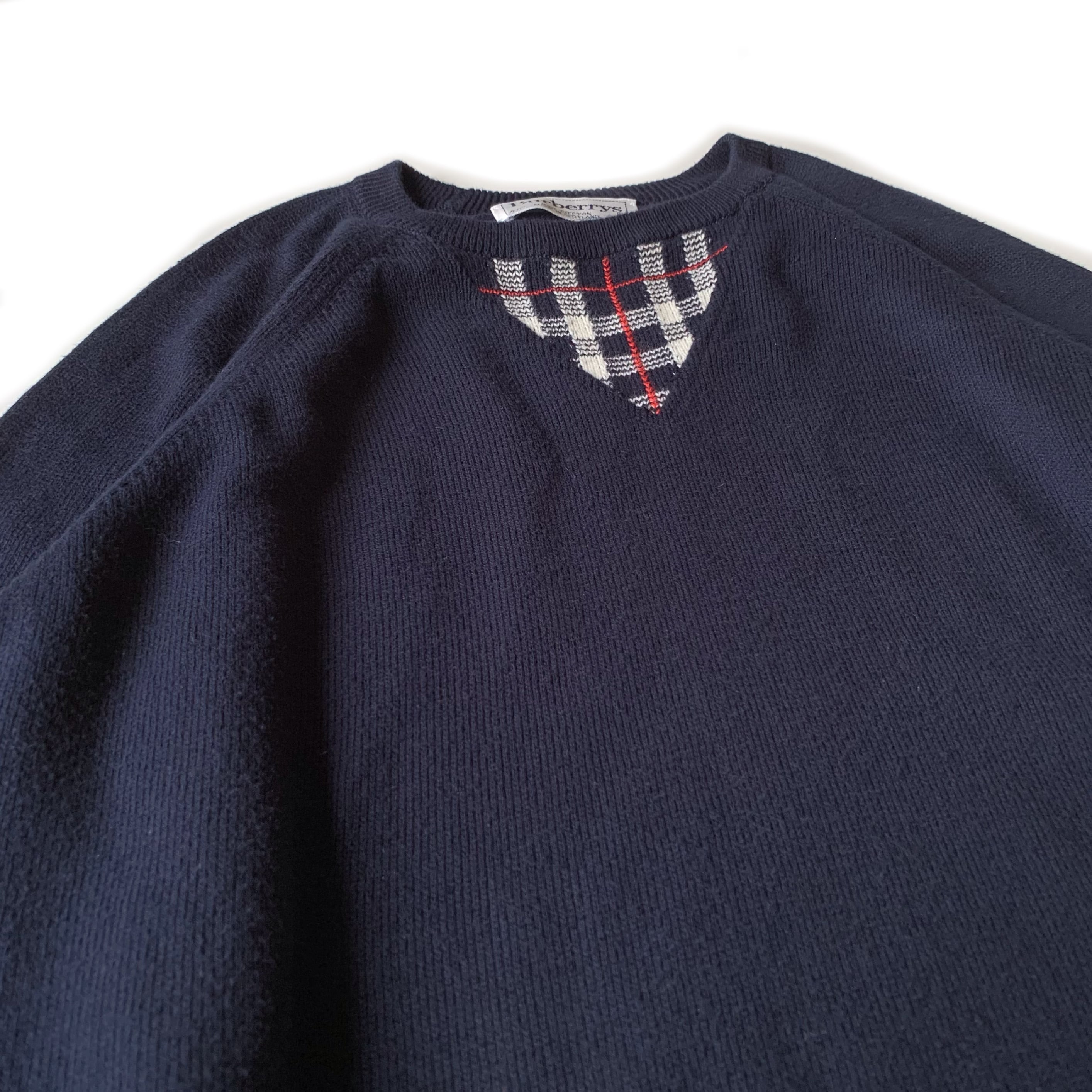 襟元にチェックが配置されたバーバリーらしい品格のあるニットです。