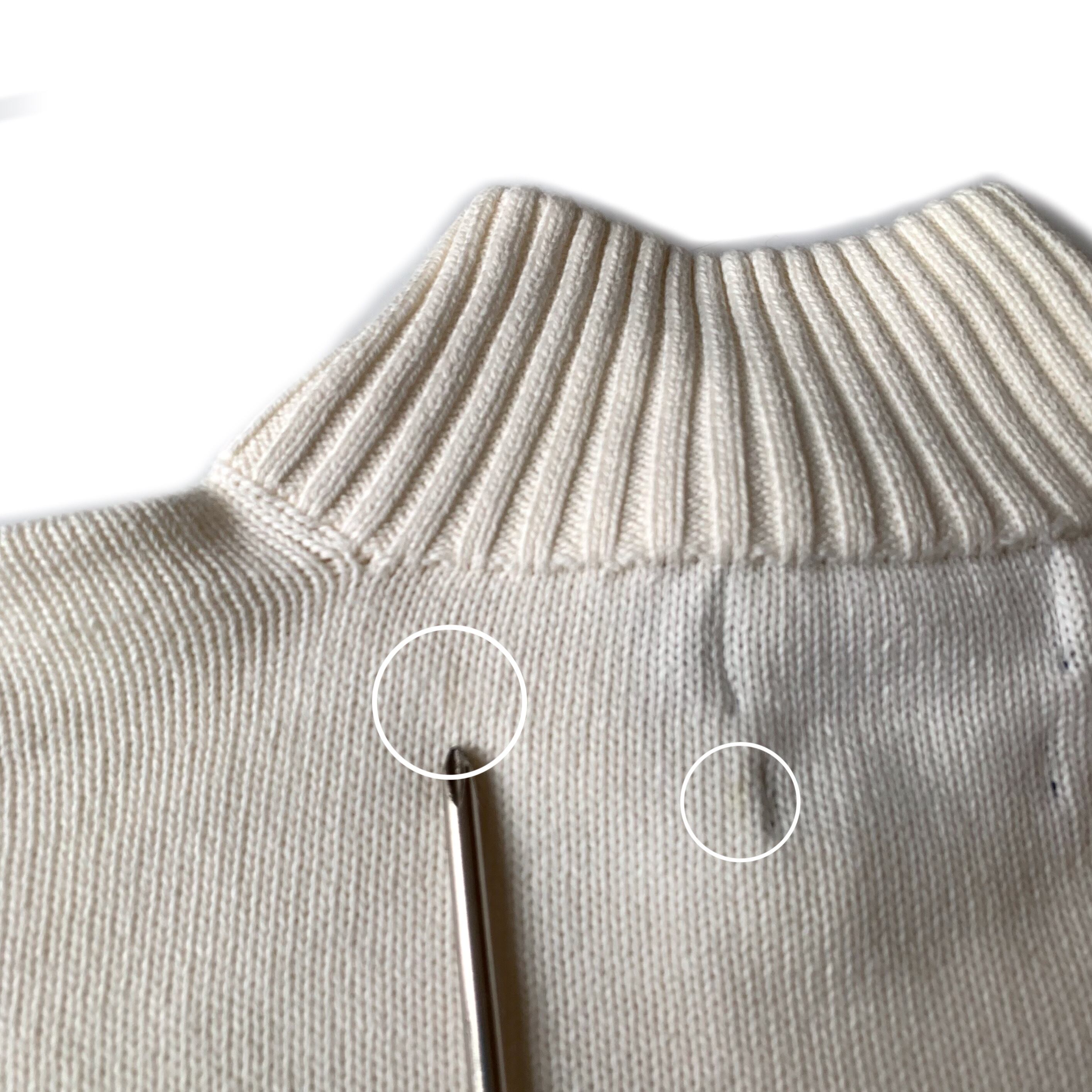 ハイネックのヘンリーネック。コットン リブ編みセーター。